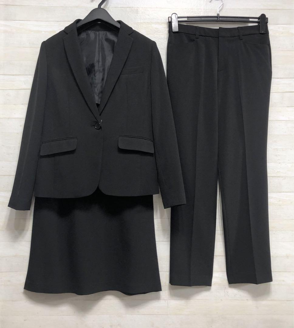 新品☆M黒系無地♪ストレッチ♪スカート・パンツスーツ3点♪お仕事〇G285