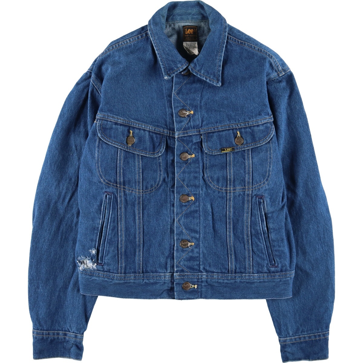 着用感: メンズM 表記サイズ: 40R 着丈: 53.5cm 身幅: 52.5cm 肩幅: 45.5cm 袖丈: 60cm ![]() | ![]() ランク:C USEDデニムですので使用感、擦れ、色落ちなどございますが、まだまだご愛用していただけます。 古着という事をご理解の上ご注文よろしくお願いします。 【状態追記】 ●右胸ポケットフラップ下に汚れ ●前、右裾に破れ ●後、背中に汚れ・糸引き ●襟ぐりに汚れ ●内側、前右裾・背中に汚れ ●内側、背中・左袖に糸引き |