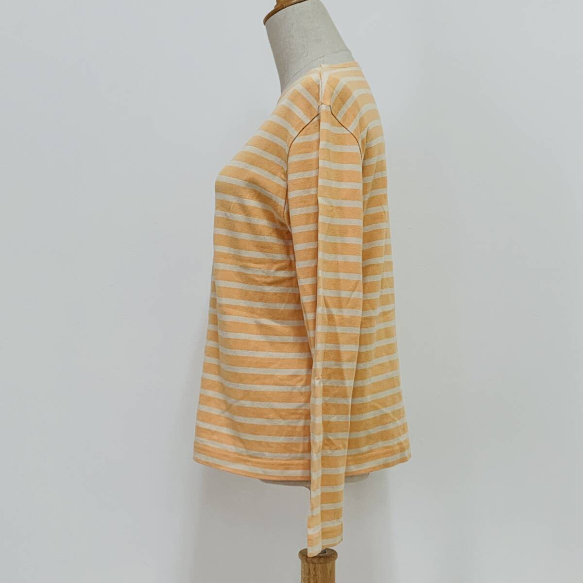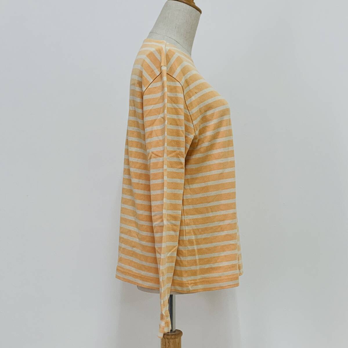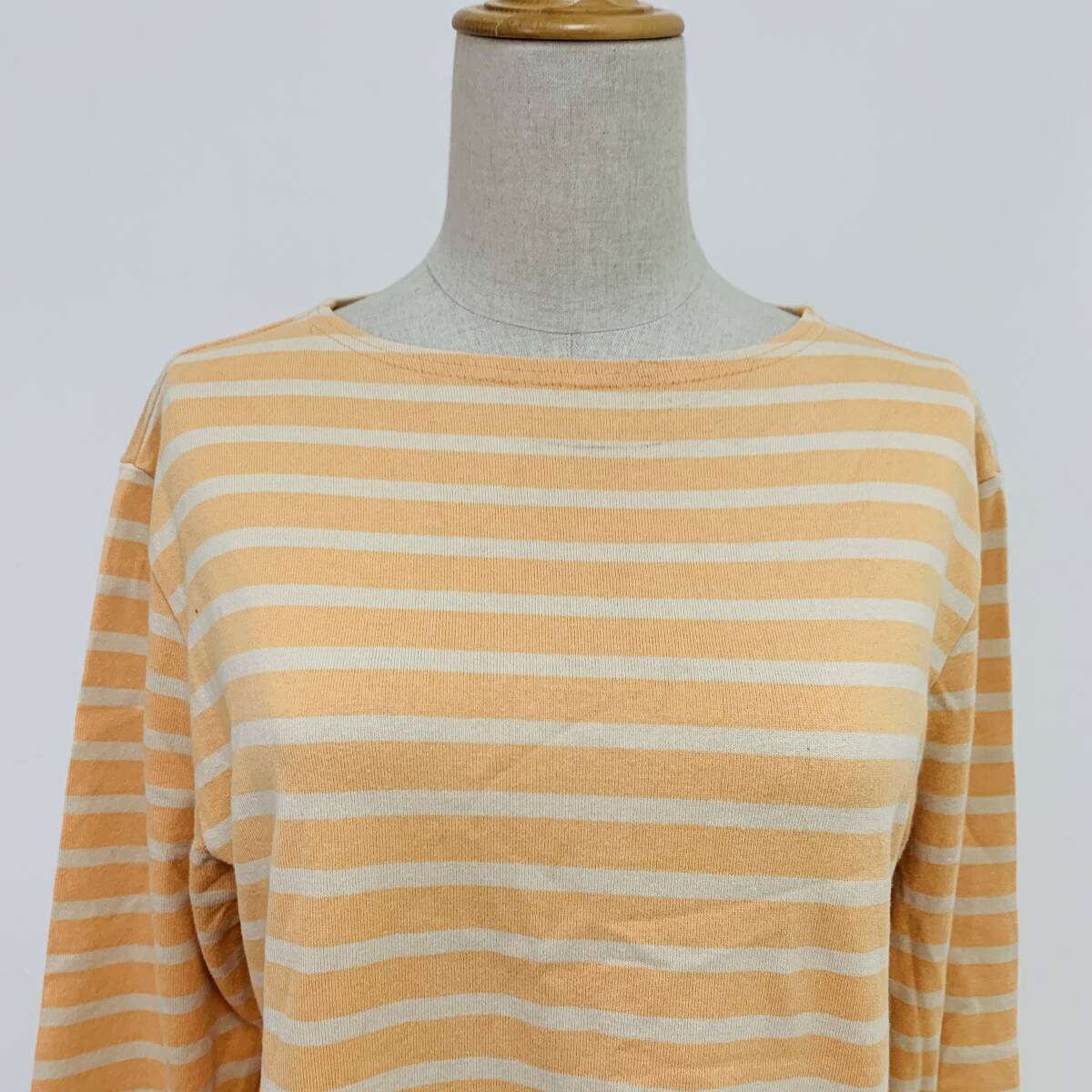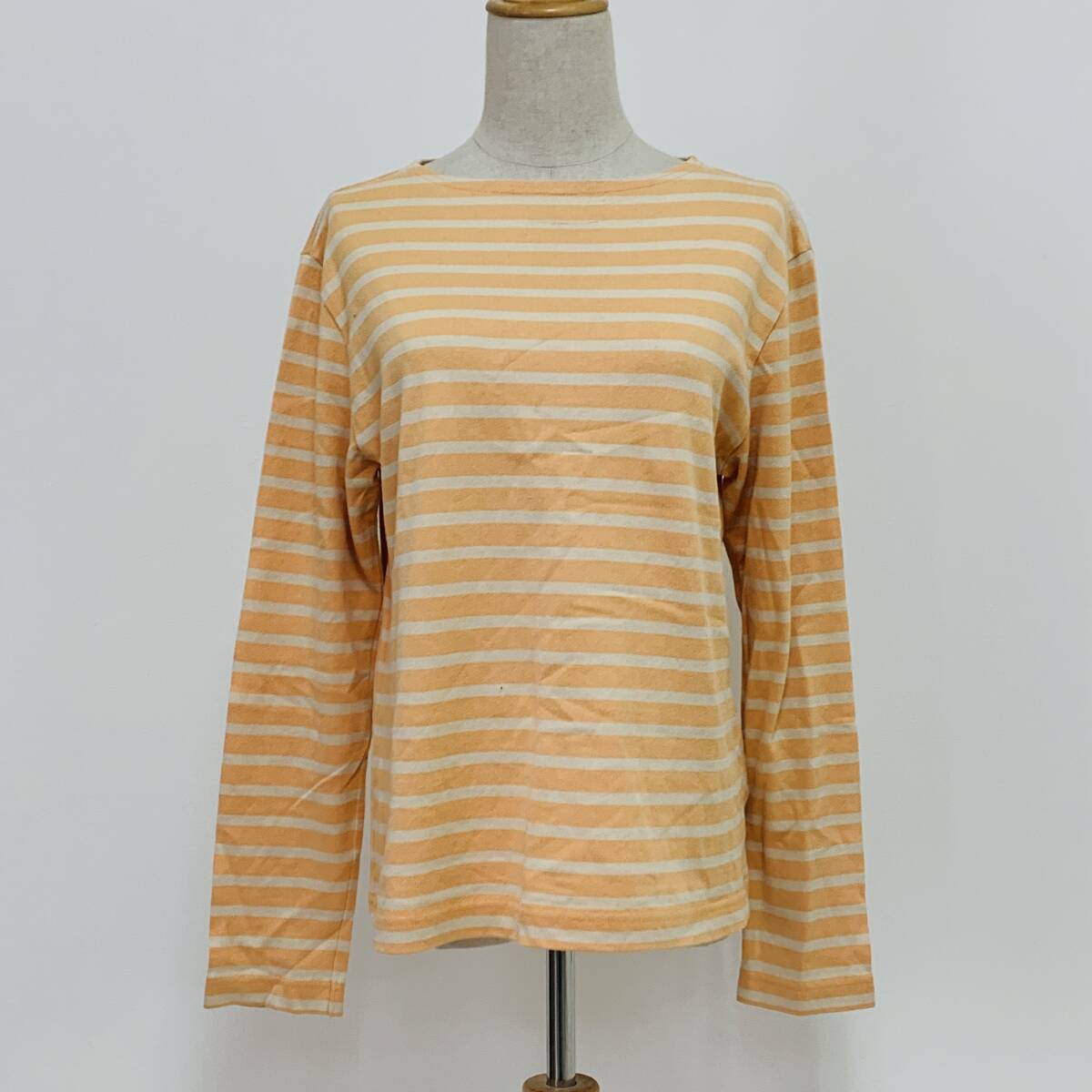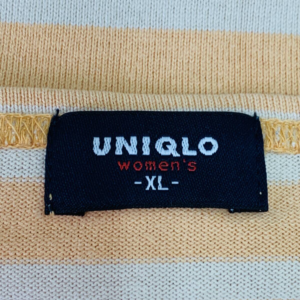 YH2446 UNIQLO ユニクロ レディース ボーダー柄 長袖 カットソー 丸首 オレンジ ベージュ XLサイズ 青タグ カジュアル 万能 USED 古着