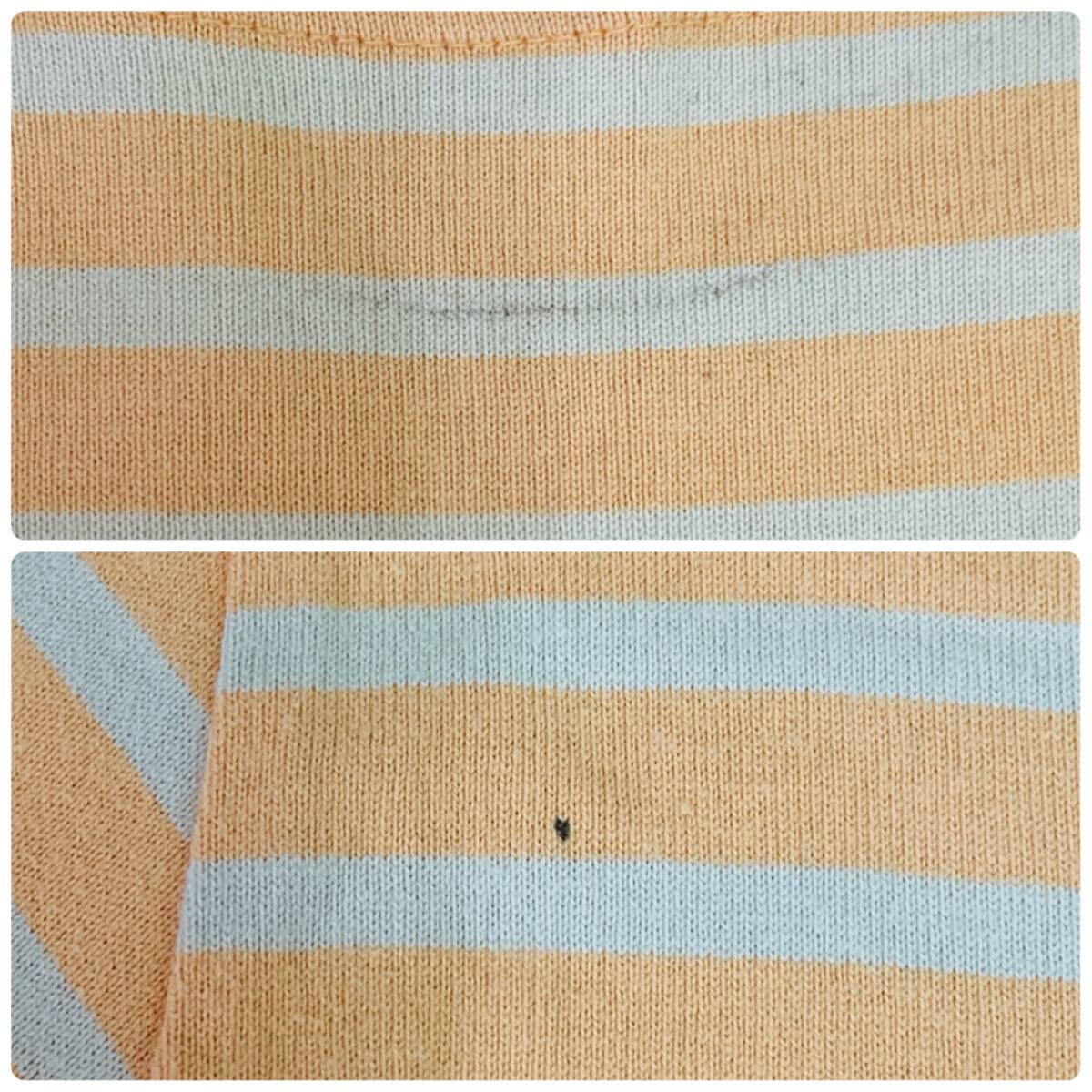 お腹部分に穴、右脇・襟部分に汚れがありますが、まだまだご使用いただけるアイテムです。(写真をご確認ください)