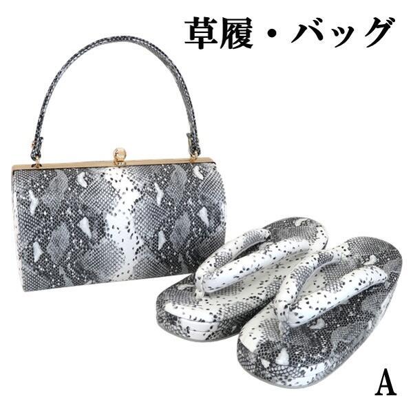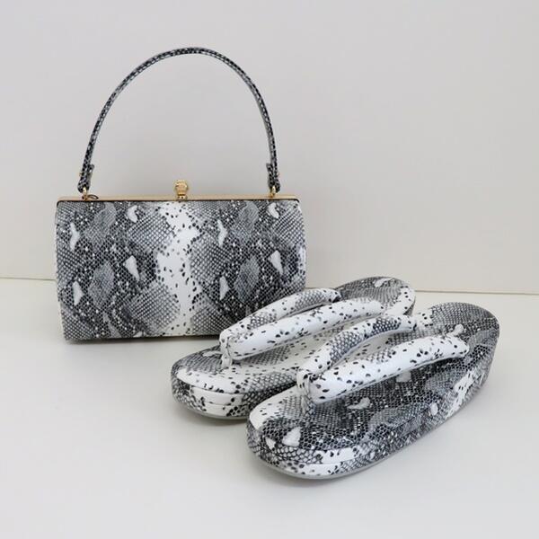 オシャレなへび柄のバッグと草履で個性豊かな着物スタイルを楽しみましょう♪