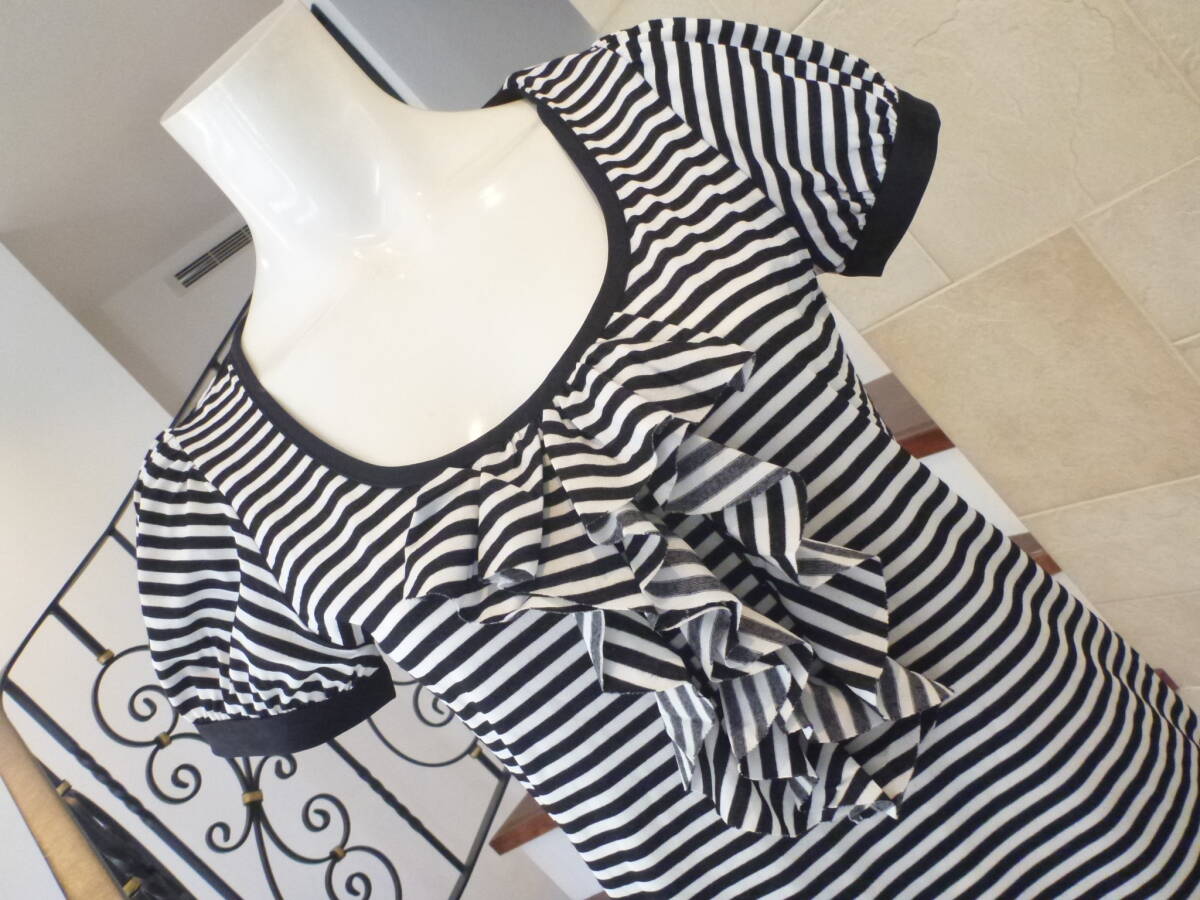 1.9万 超美品 nanette lepore(ナネットレポー)★東京スタイル 黒×白 ボーダー フリル カットソー M