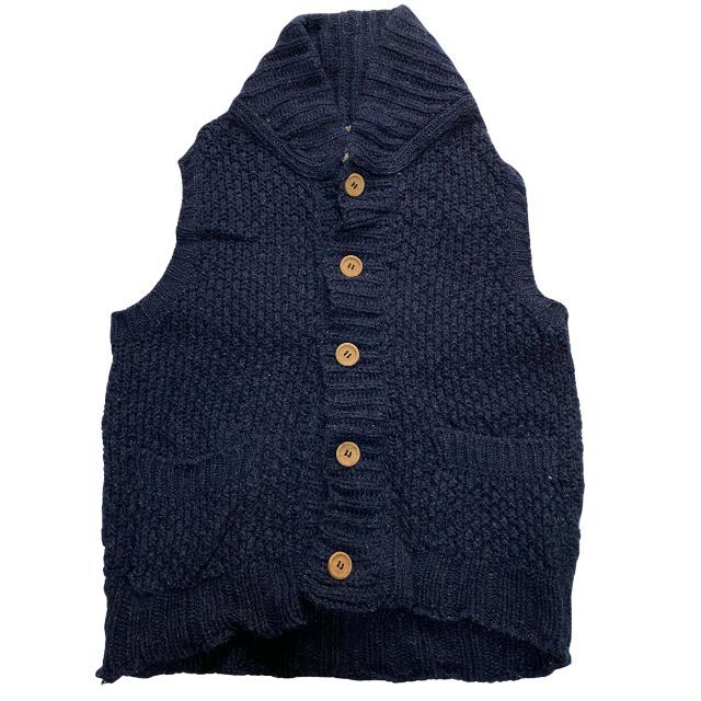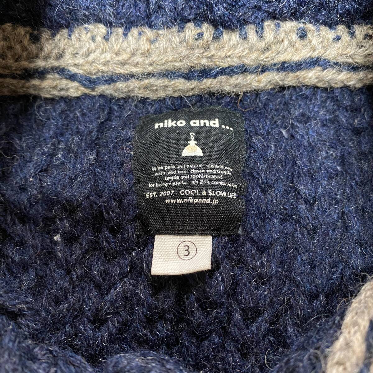 ニコアンド カウチンベスト レディース ネイビーブルー ウール ニットベスト  niko and ショールカラー ウッドボタン 雅瀬1279