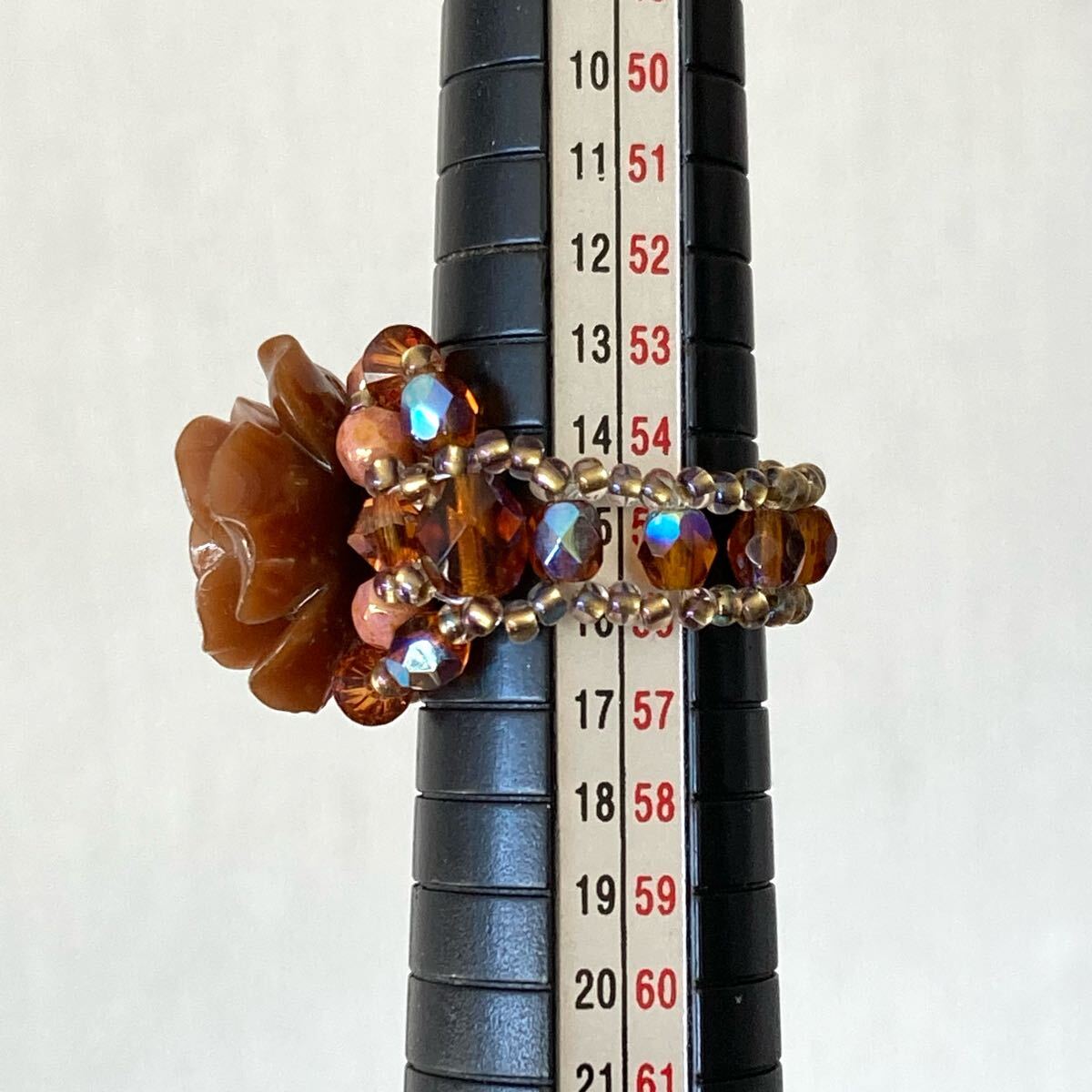 14-16号 ビーズ リング  大きい薔薇のビーズリング ブラウン