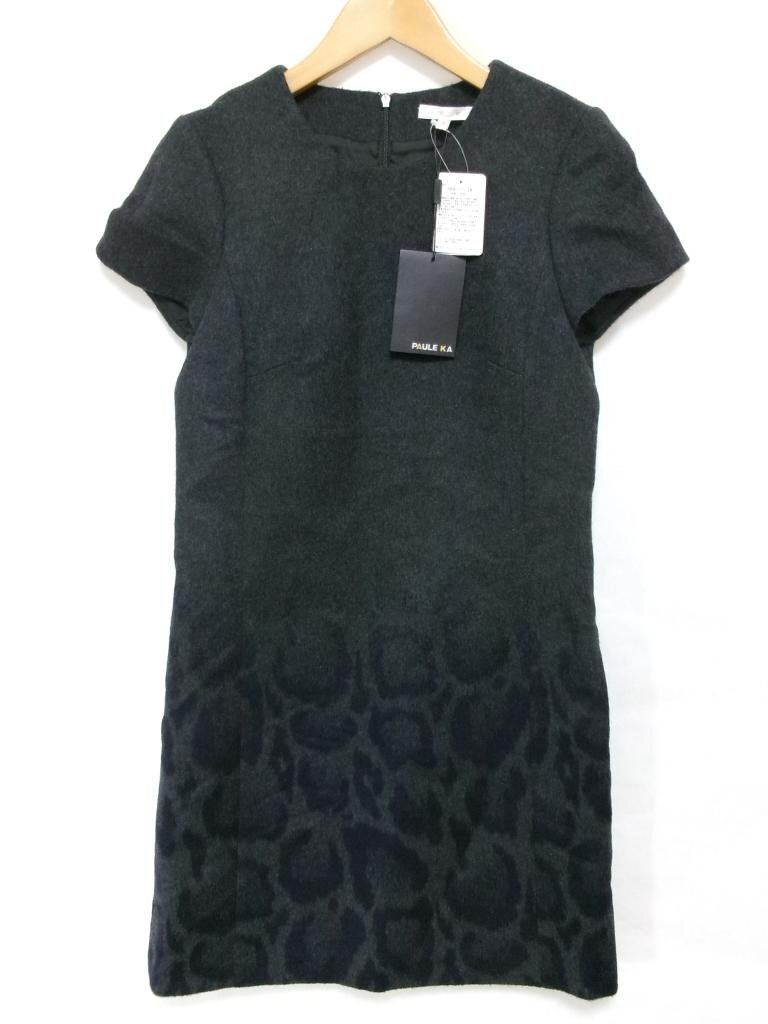【送料込】 新品!PAULE KA ポールカ ワンピース グレー レオパード ウール アンゴラ 半袖 クルーネック 未使用 タグ付き size36 S/967155