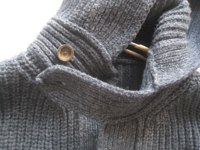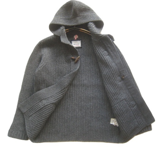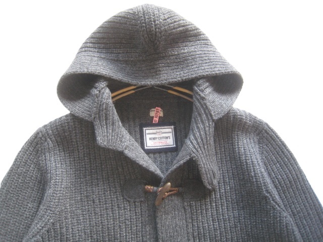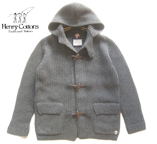 極上ルーマニア製!!ヘンリーコットンズ Henry Cotton's*定価5万 木製トグル付き ヴァージンウールニットジャケット M グレー ダッフル