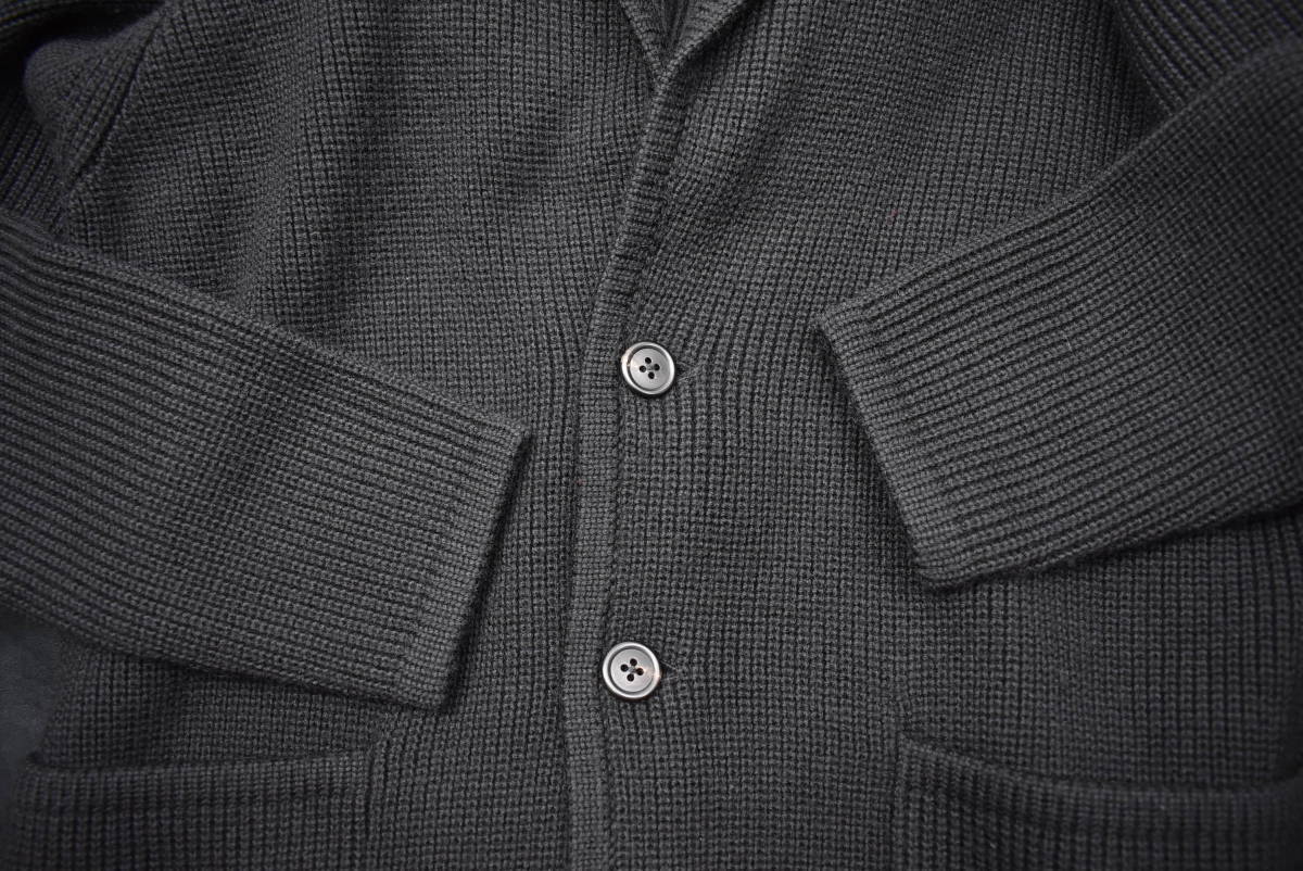 こちらもウール100%の密に編み込まれたしっかりとしたニット素材を使用したジャケットでオン・オフ共にご活用頂けると思います。