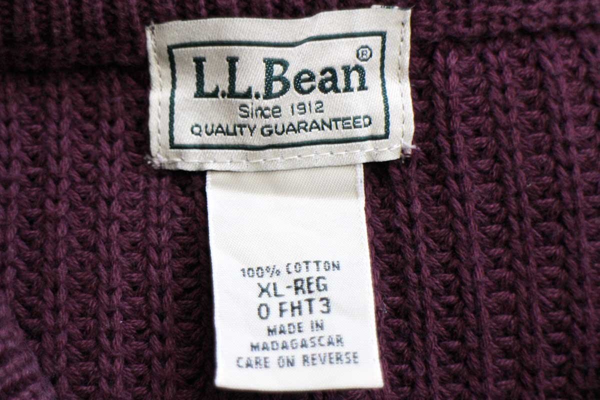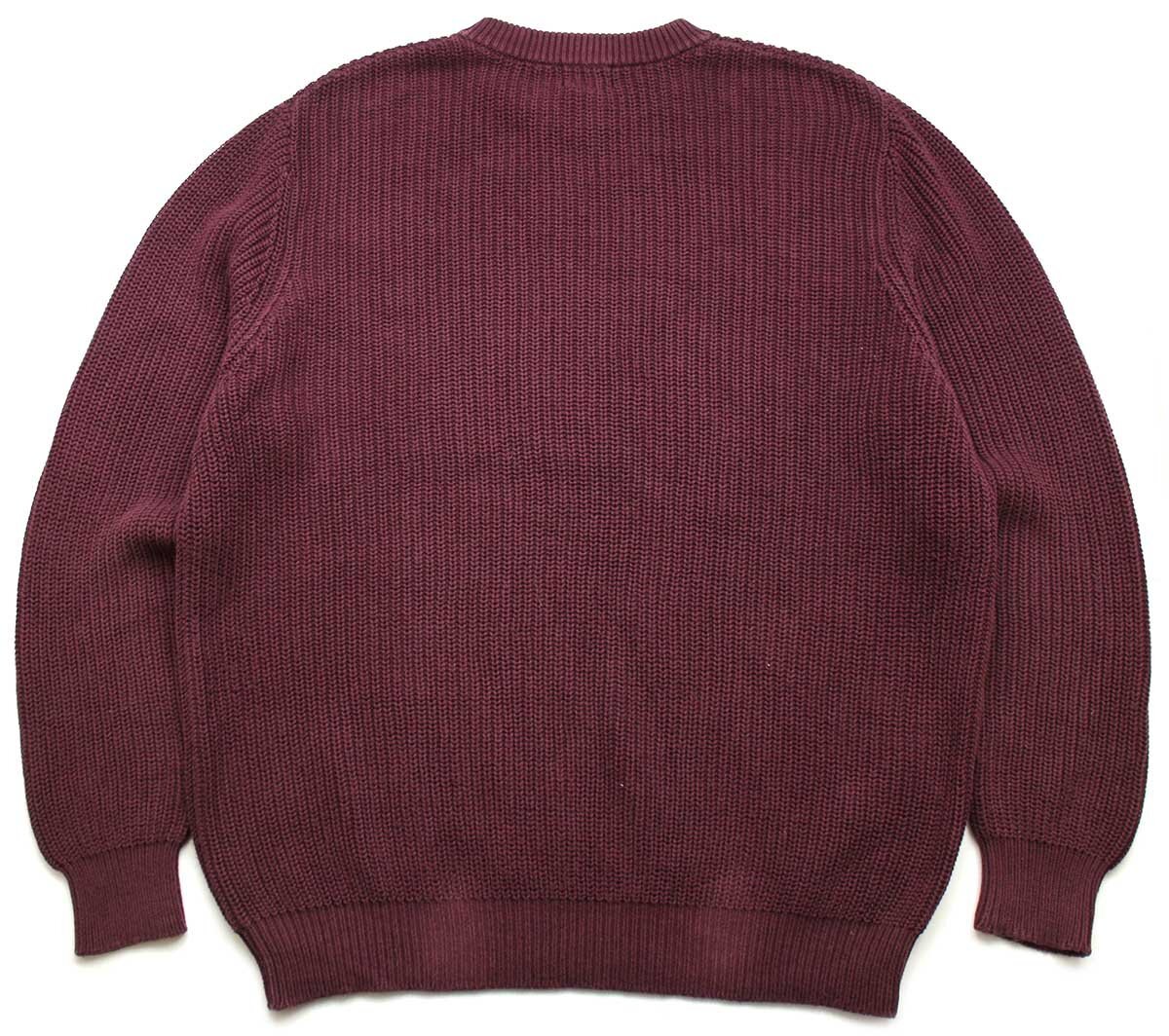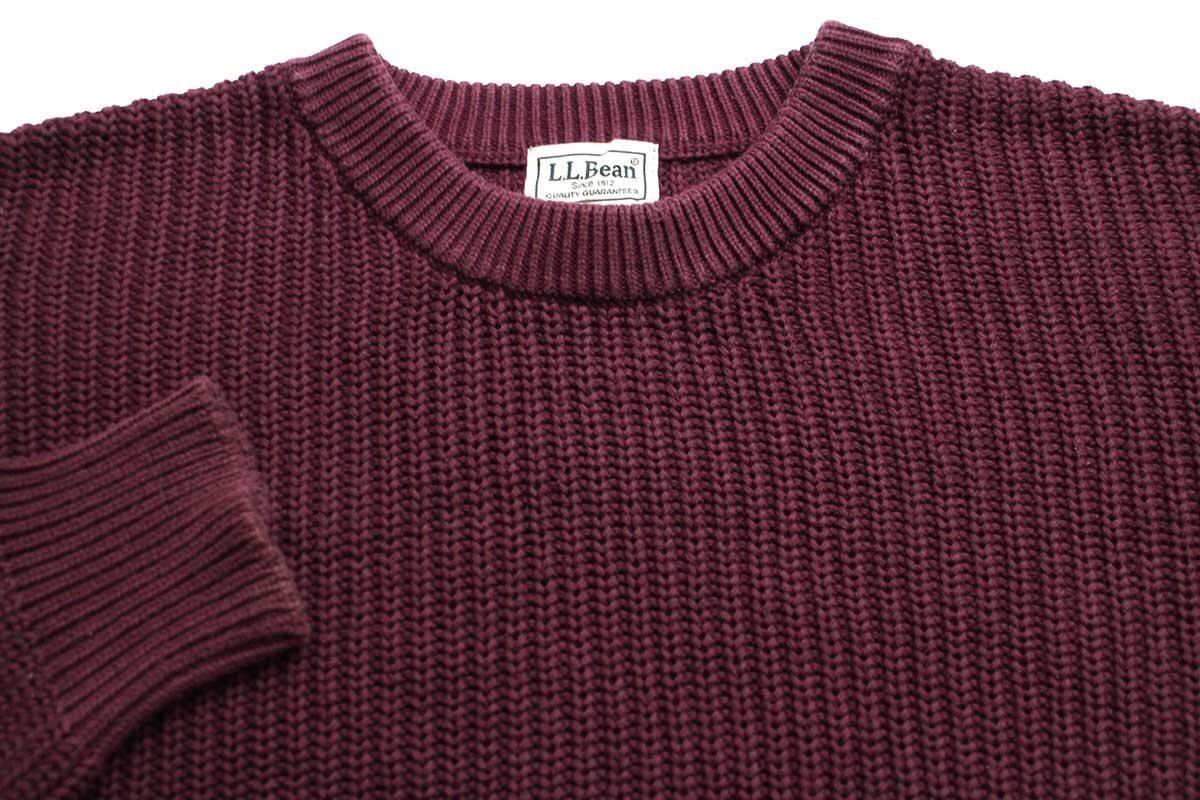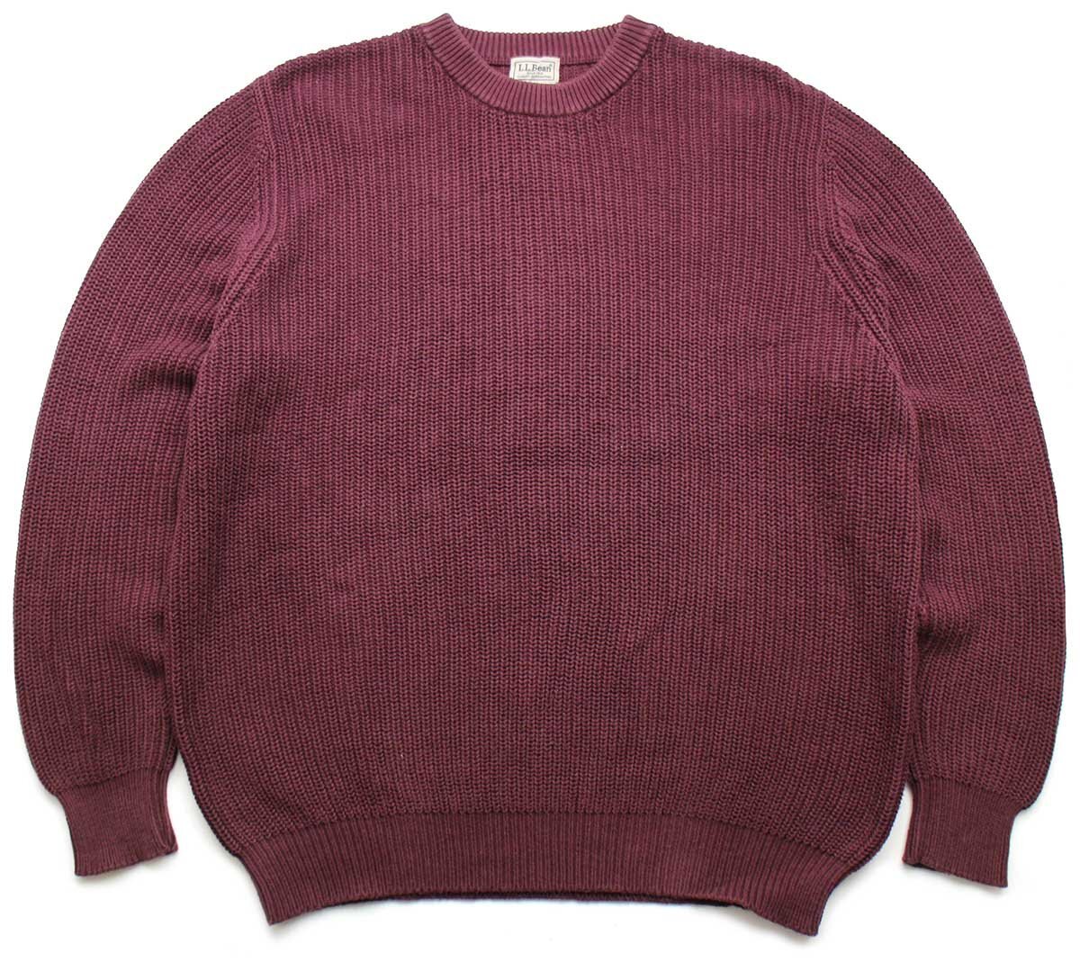 ★L.L.Bean 無地 ローゲージ コットンニット セーター ワインレッド XL-R★アウトドア リブ編み 畦編み オーバーサイズ ビッグサイズ