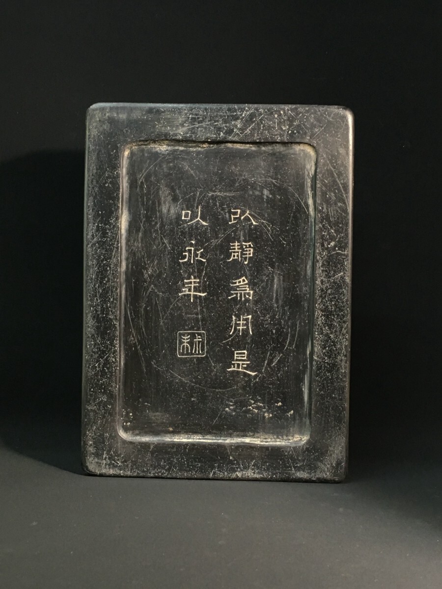 清代 端石浮彫 双蝠捧壽文房端渓硯 叔未銘【仁】手彫り 文房具 書道具 中国古硯 蔵出 骨董