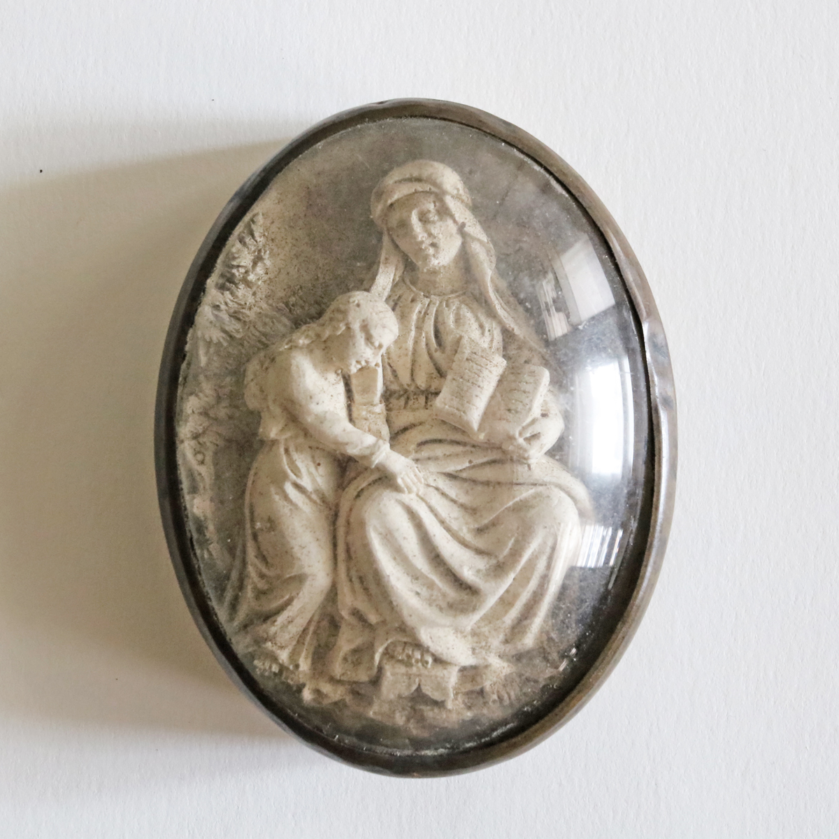 19世紀 1800年代 ガラスドーム 聖母子像 聖母マリア 教会 キリスト マリア フランスアンティーク 聖品 装飾 クロス 十字架 メダイ