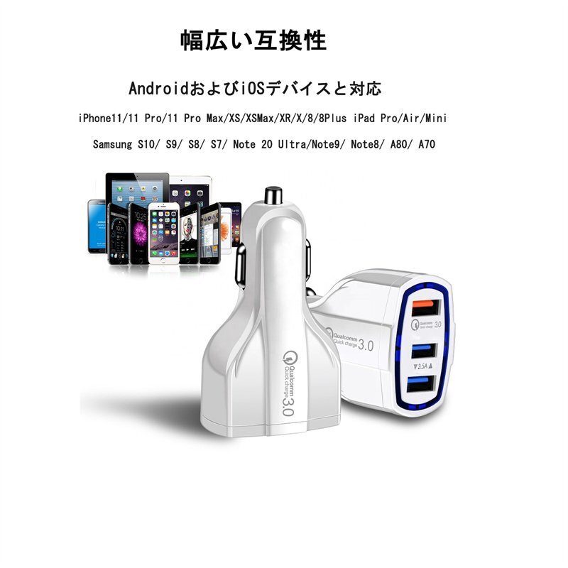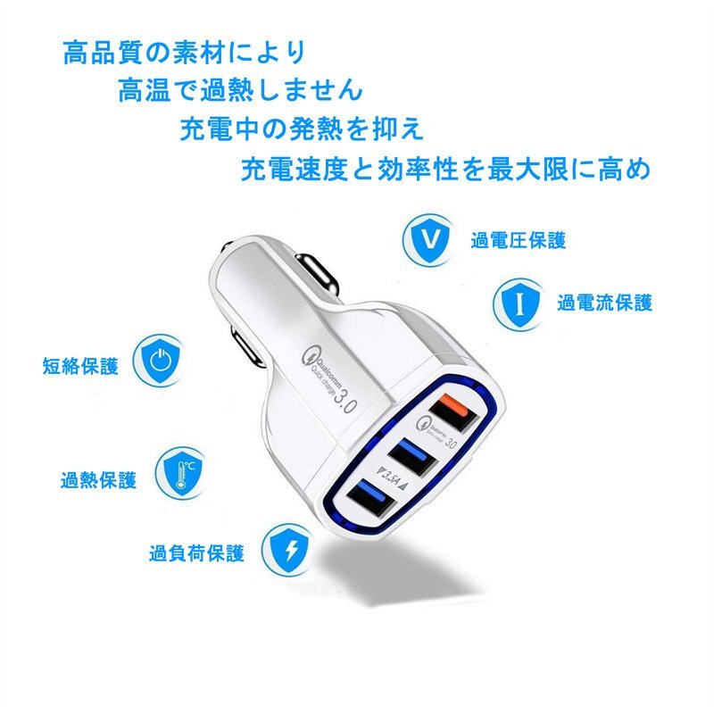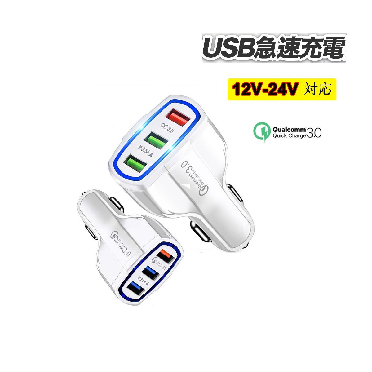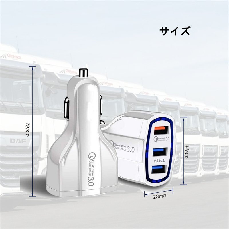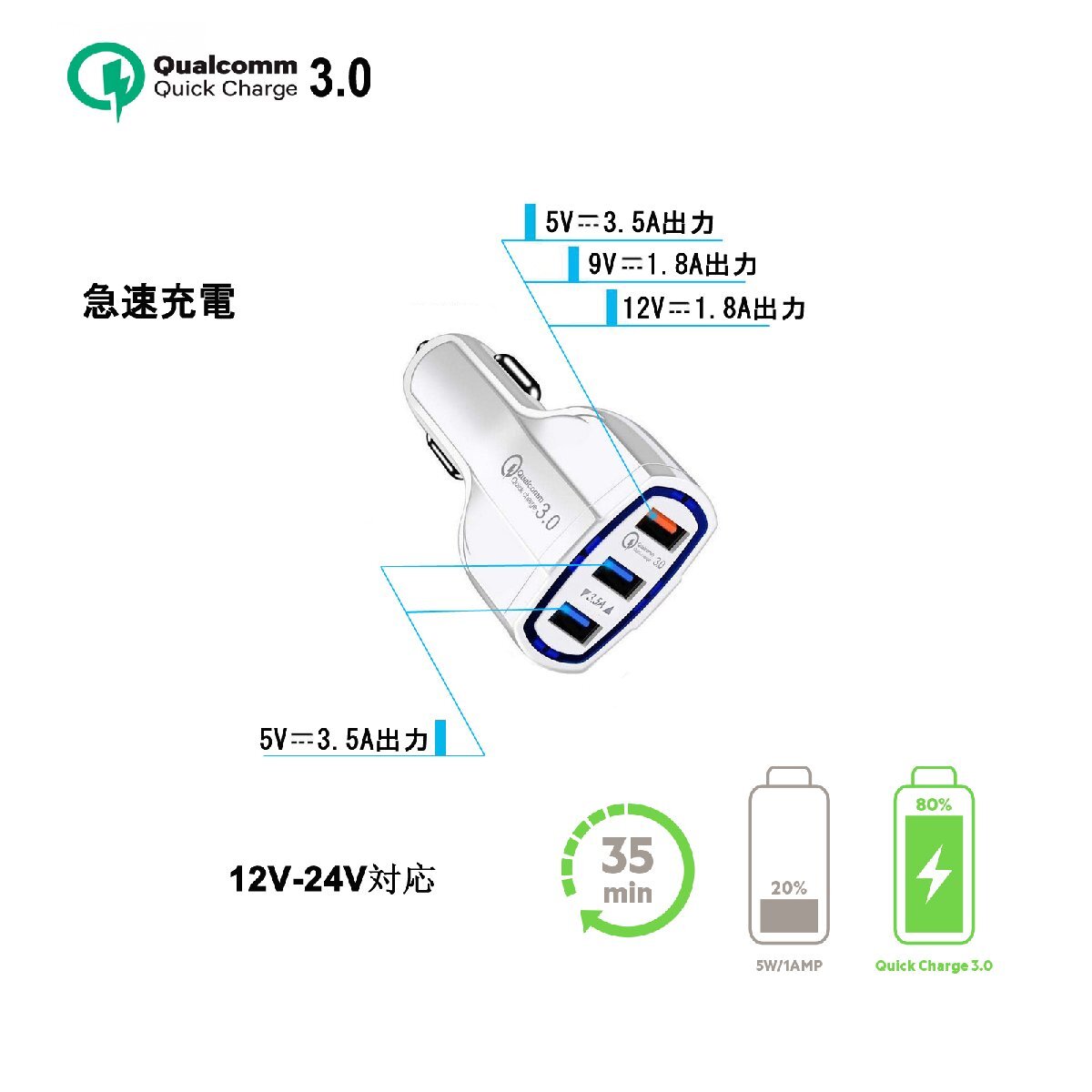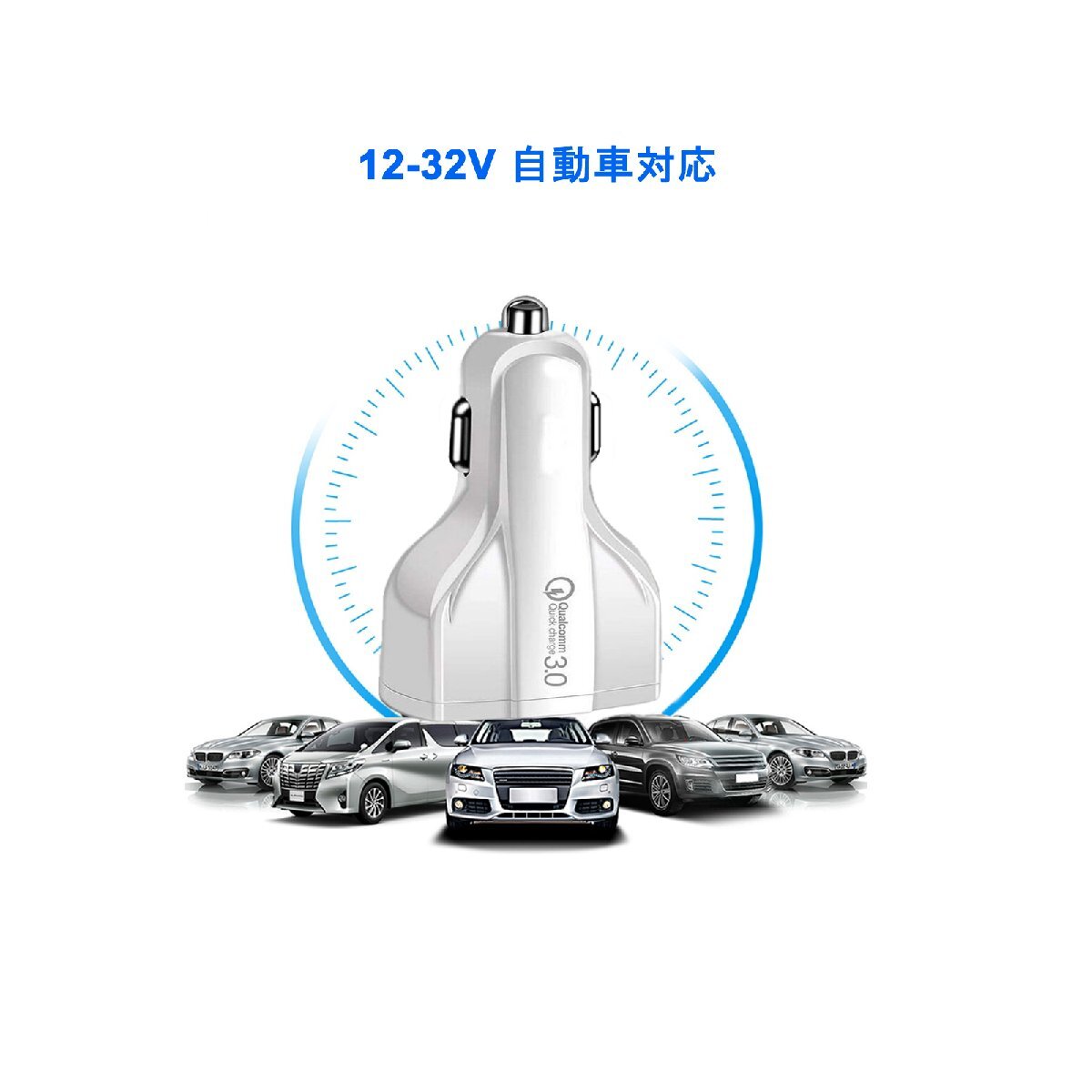 カーチャージャー DC12-32V 車対応最大MAX7A USB3ポート白