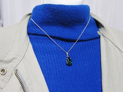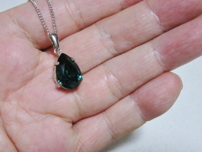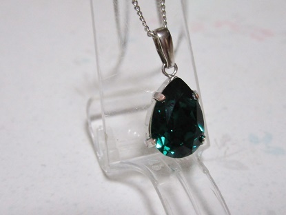 | サイズ | サイズ: ◆トップの大きさは、15×10ミリです。 エメラルドスワロフスキー 1石の大きさは、14×10ミリです。 チェーンは、ロジウムメッキの喜平チェーン45cmです。 |