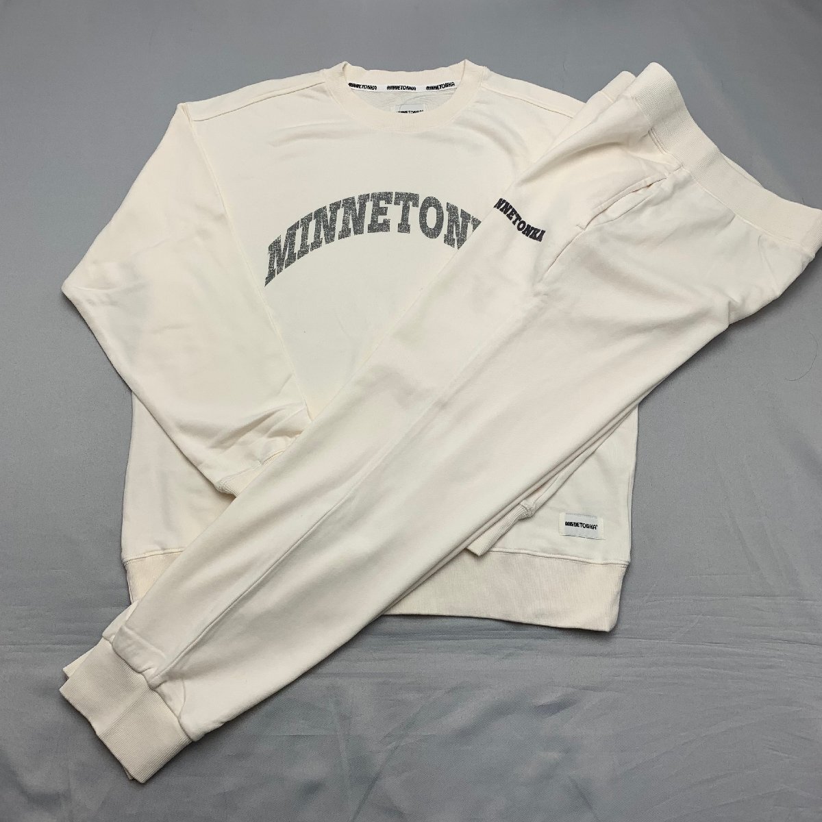 【北海道・沖縄以外送料無料】【新品】MINNETONKA メンズトレーナースーツ(裏毛素材 ゆったり コットン100%)  L  アイボリー★43303