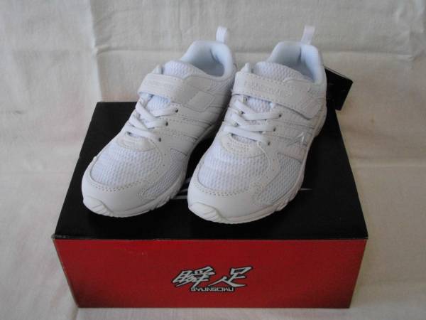 瞬足 094 19.0cm ホワイト 男女ジュニア兼用 ひも付き マジックタイプ スニーカー 白 通学に、校内ばきに スポーツに
