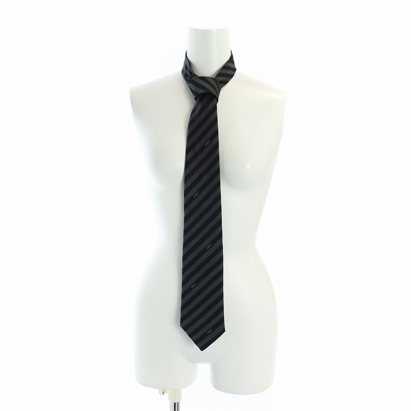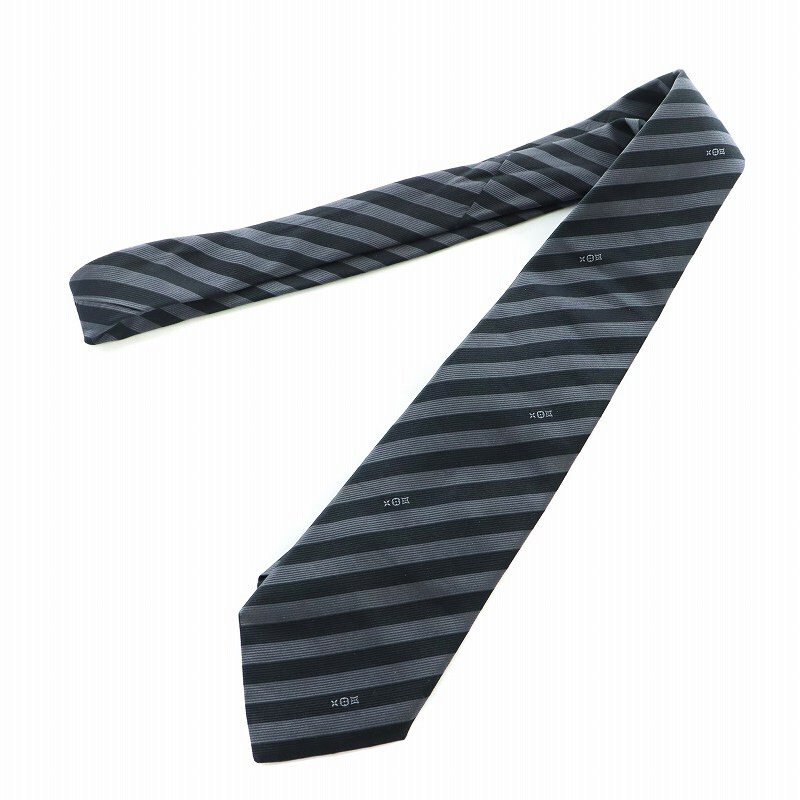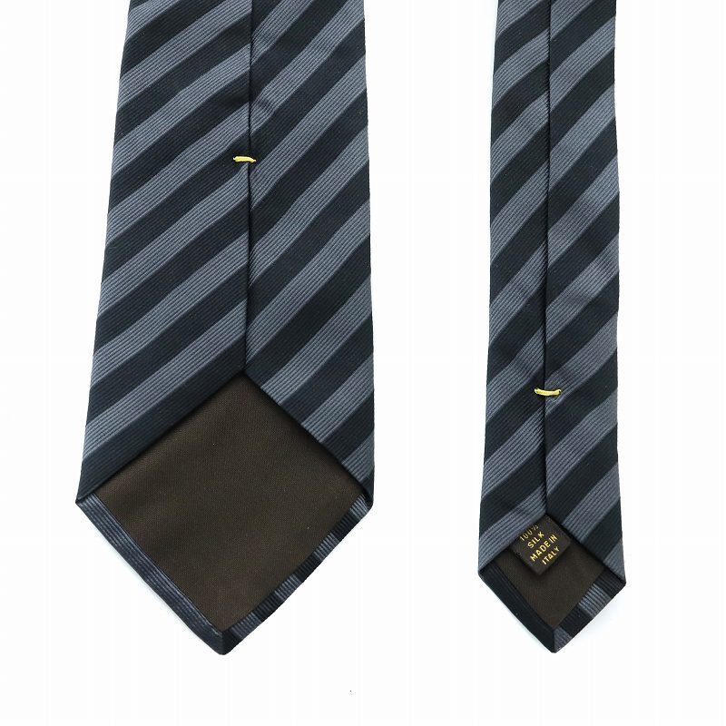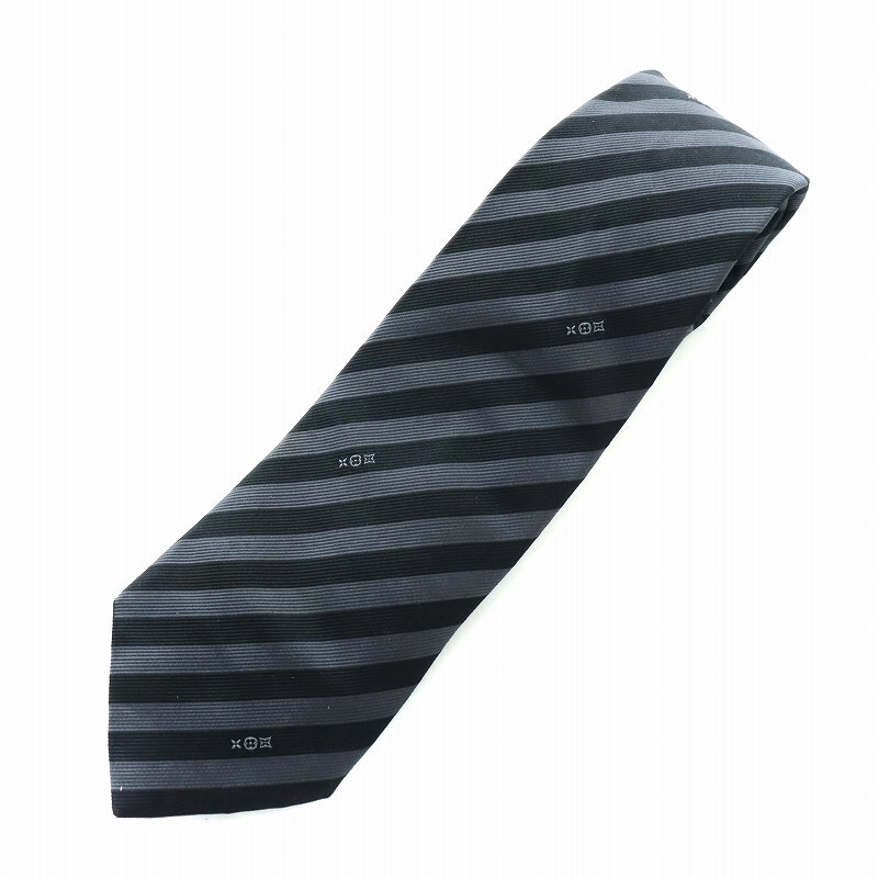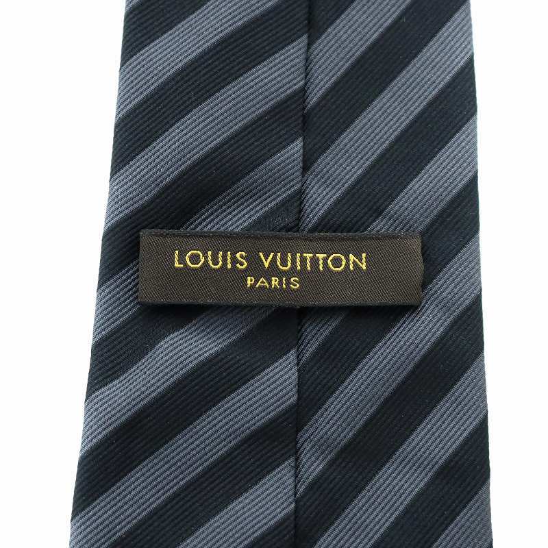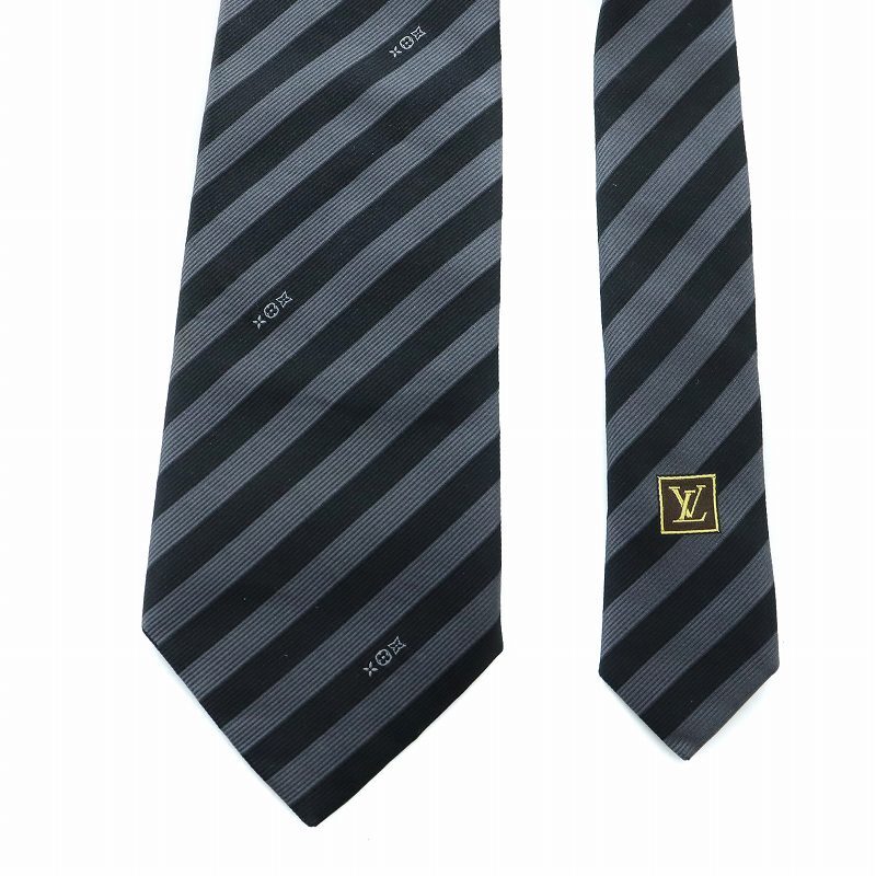 ルイヴィトン LOUIS VUITTON ネクタイ ワイドタイ レジメンタル ストライプ ロゴ 絹 シルク 黒 ブラック グレー ■GY17 /MQ メンズ