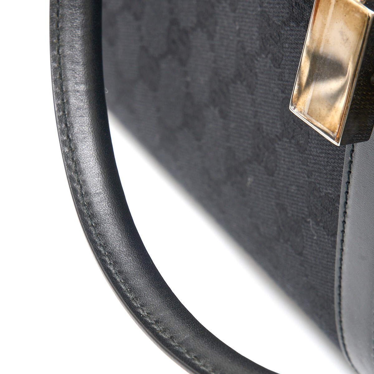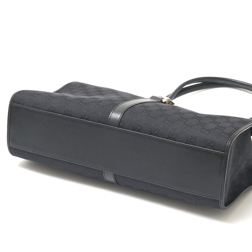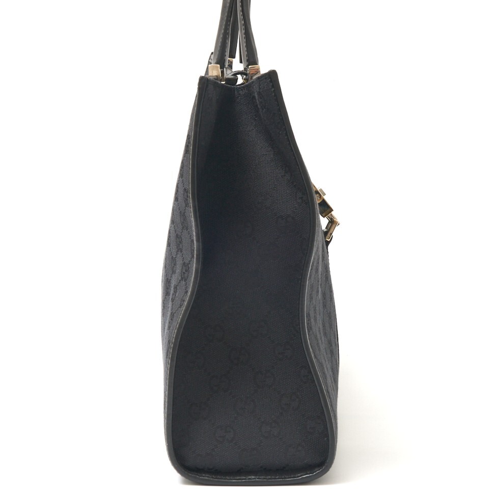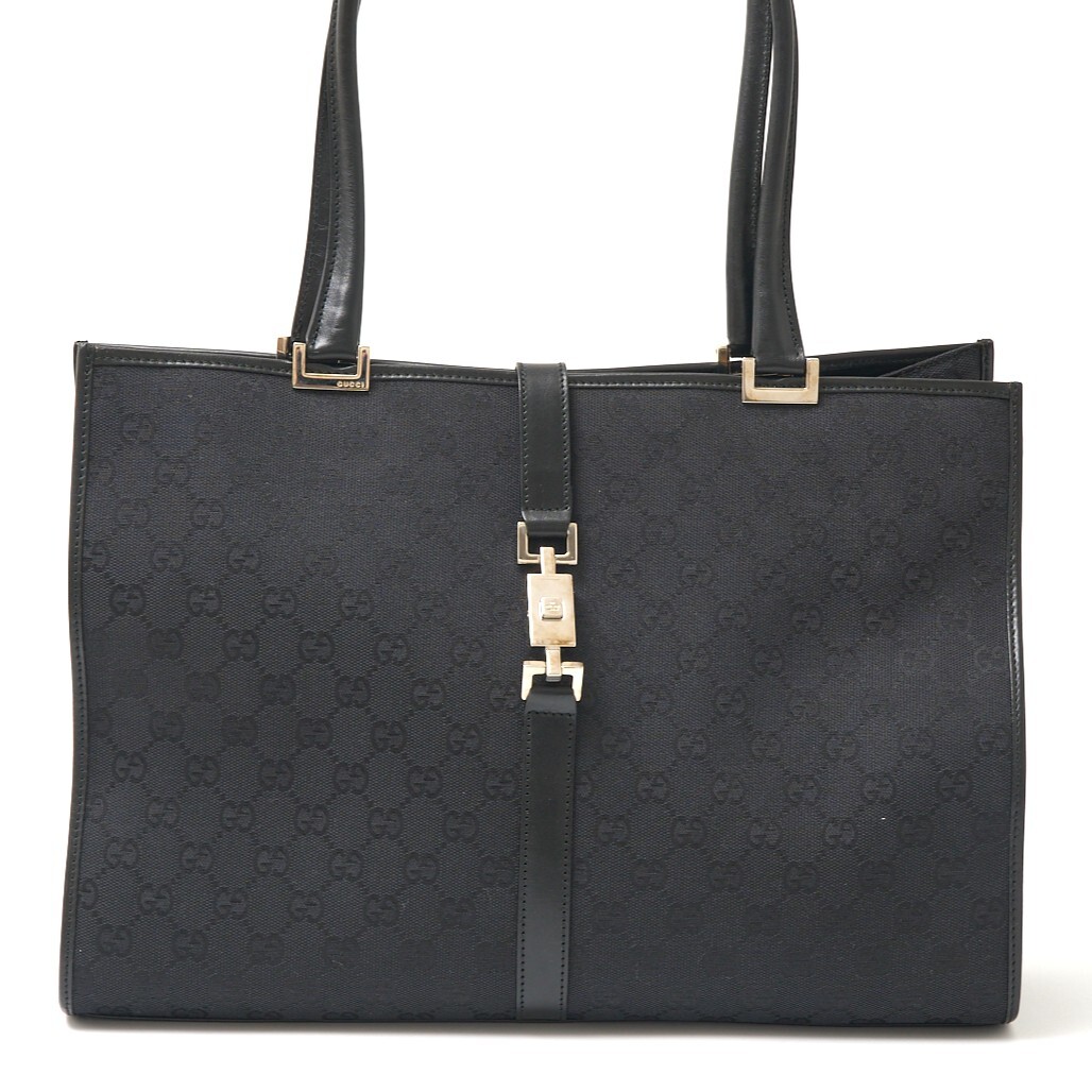 GUCCI グッチ ジャッキー GGキャンバス トートバッグ ショルダーBAG 002.1074 レザー ブラック×シルバー金具 シンプル レディース