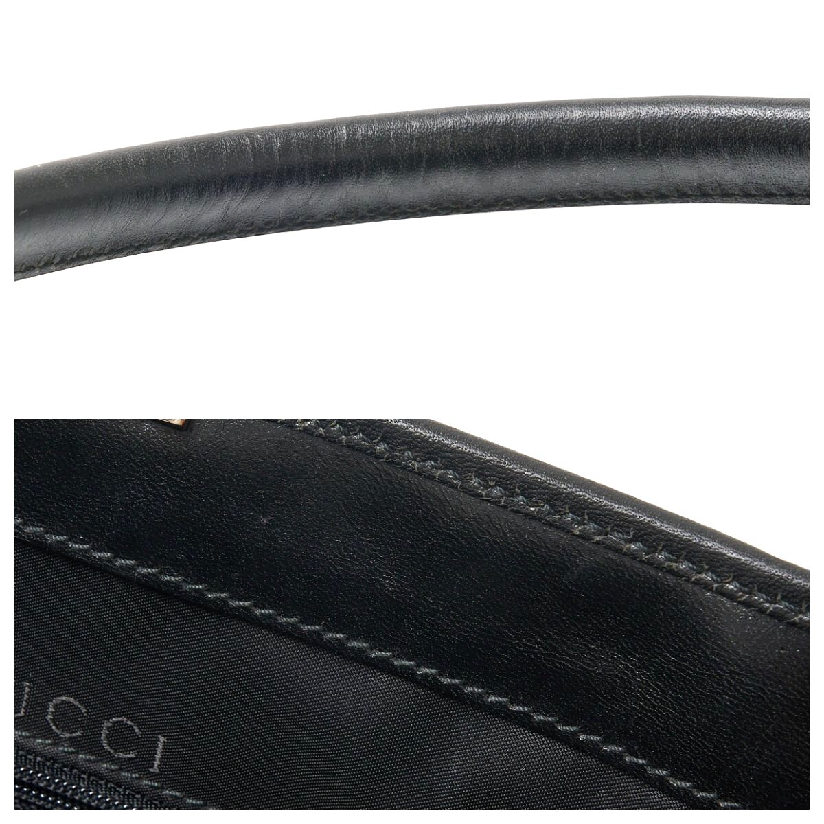 開口部内側革傷/生地浮き、ナイロン汚れ(白)有り
