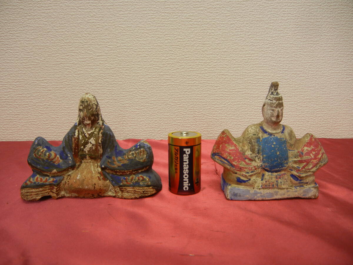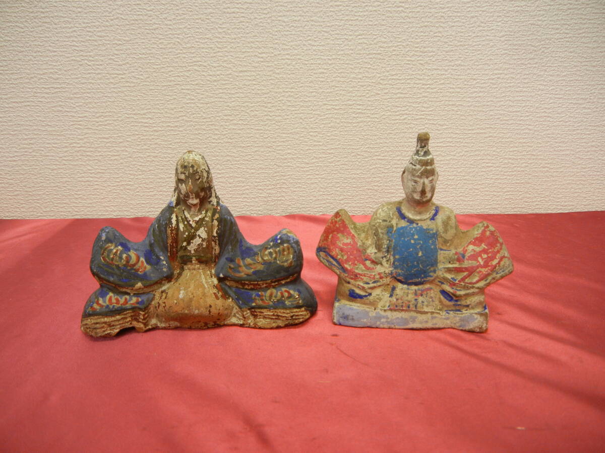 【土人形】年代物 お雛様 お内裏様 2体まとめて ひな人形 アンティーク ビンテージ 経年品 送料込み
