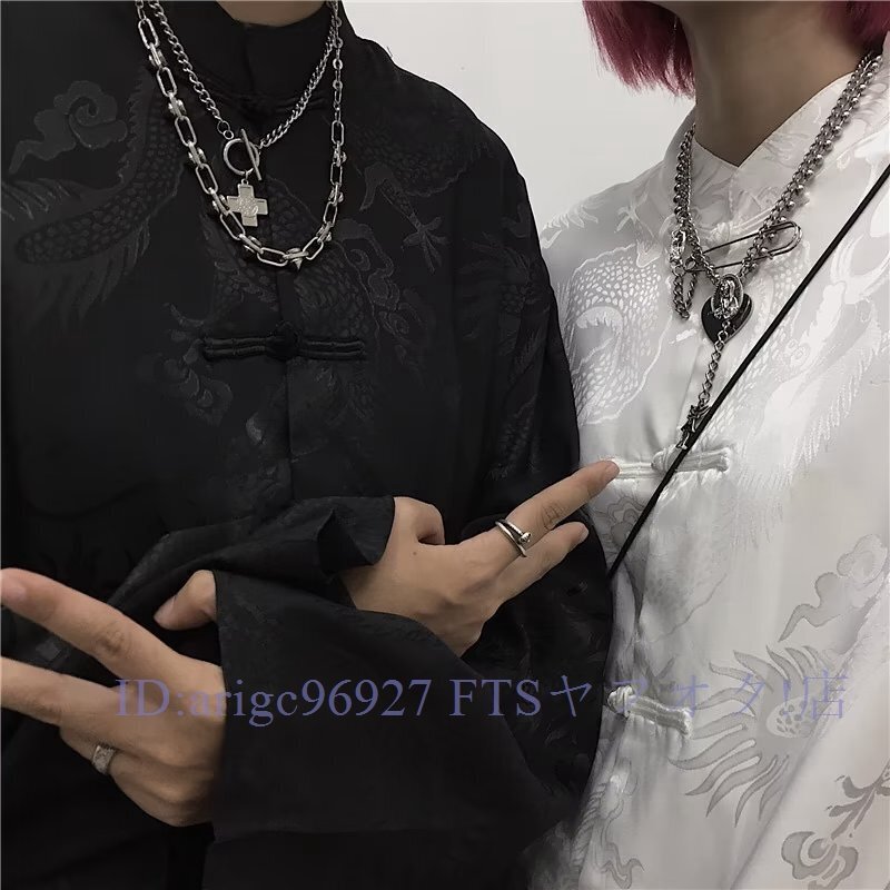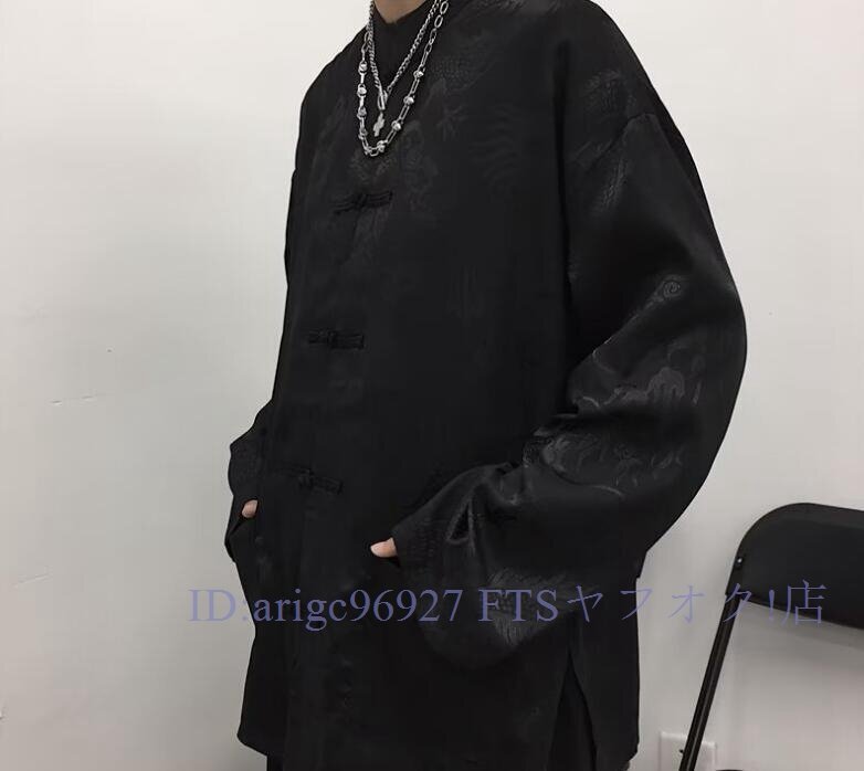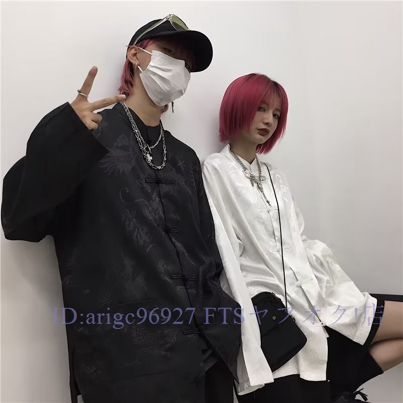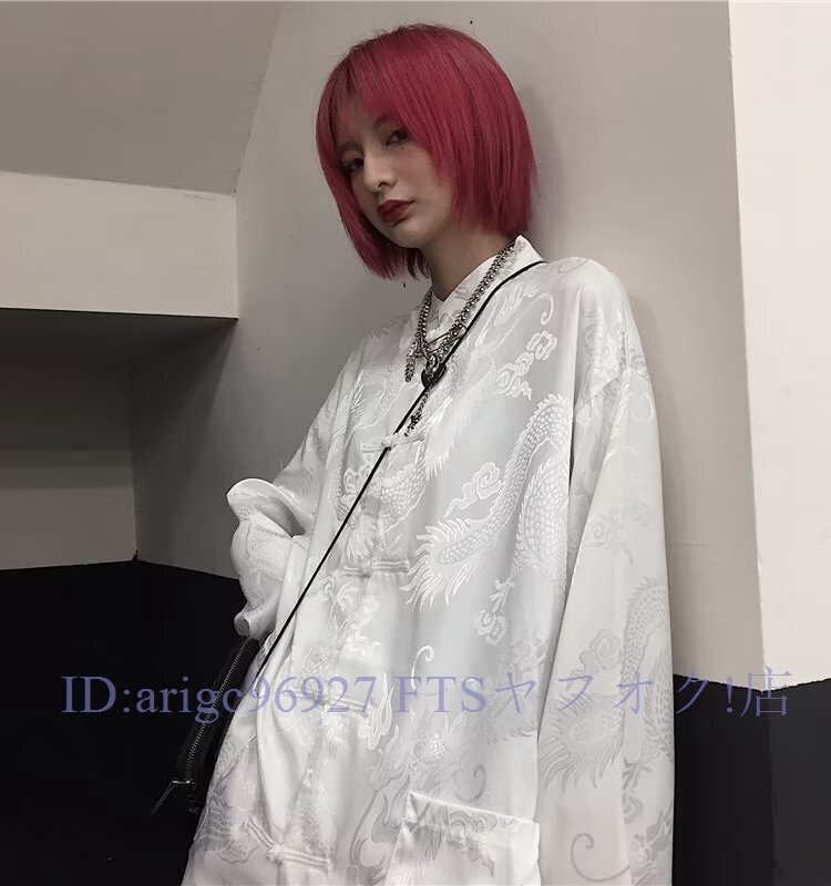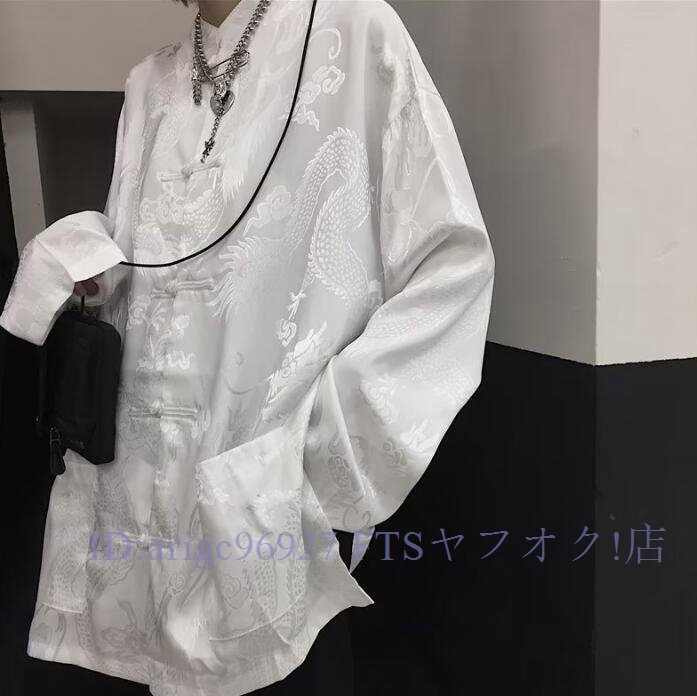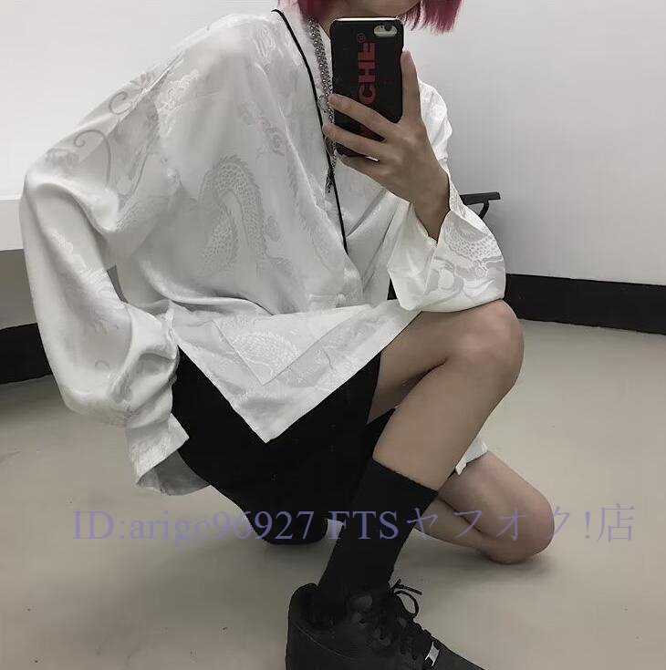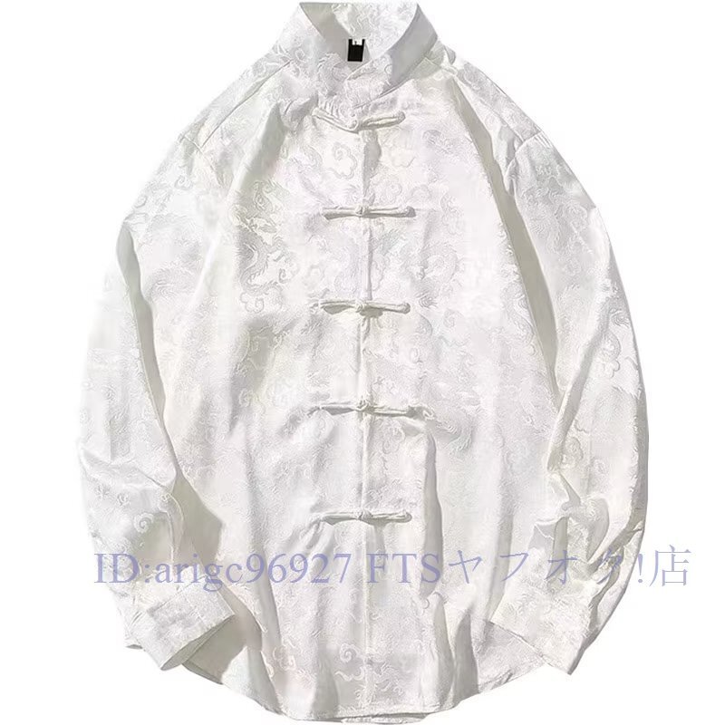 ★新品シャツ レディース メンズ 長袖 カバー 服 ブラウス トップス 羽織 大きいサイズ ゆったり 春秋 チャイナ チャイナ風 ホワイト 3XL