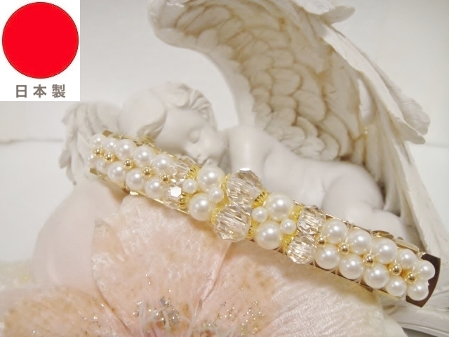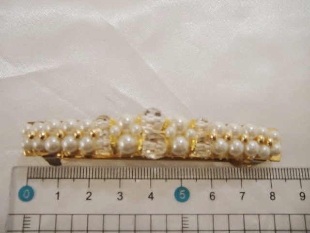 ♪ 新品 バレッタ 日本製『高品質/ロングサイズ/レクタングル/GOLDボール&パール&ビーズビジュー』♪