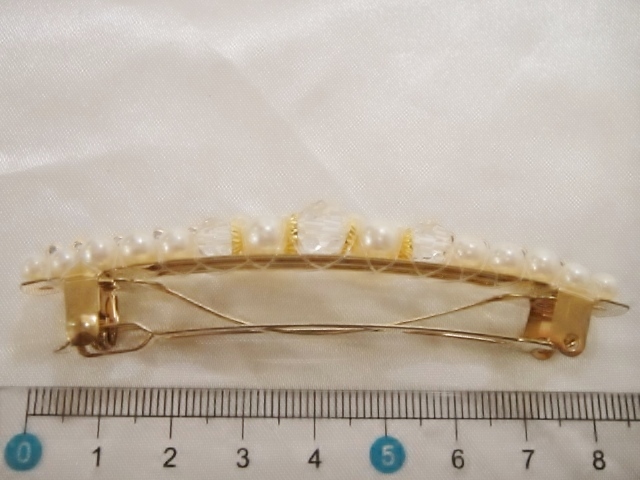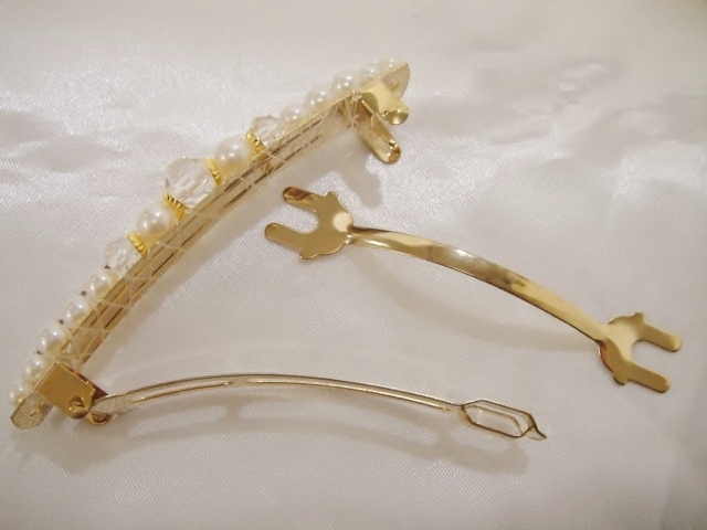 バレッタ本体、クリップ等にメッキ加工が施されておりますが経年劣化による色の変色が生じる場合がございます。