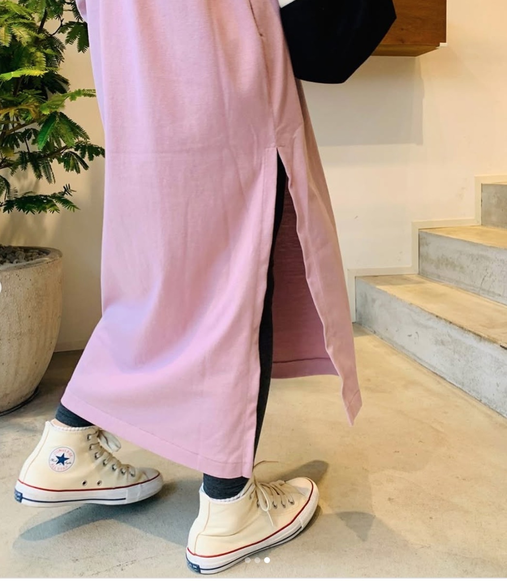 レギンスやパンツなど、ワンピースの下に履くものを変えて様々な着こなしができることも魅力です。