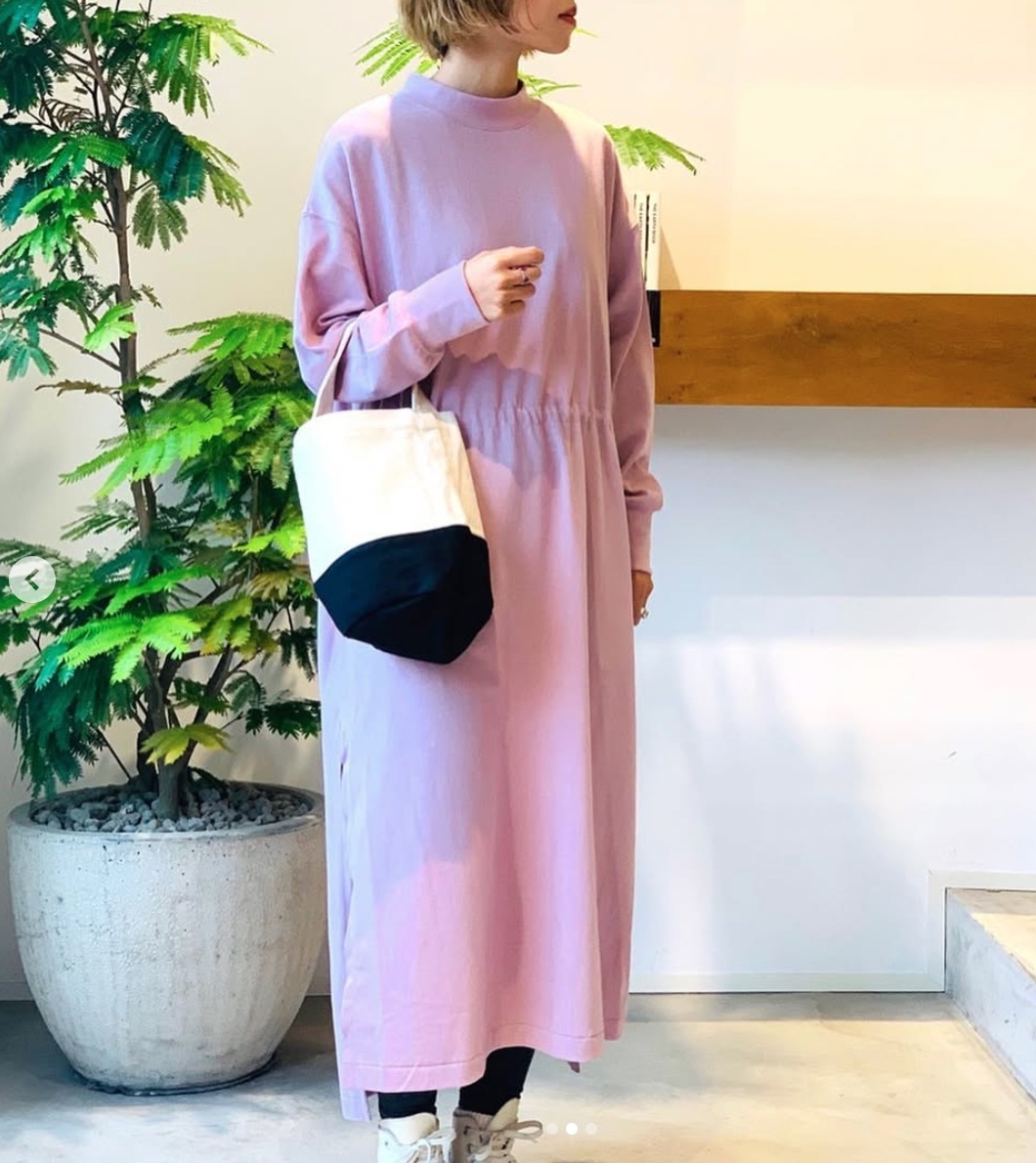 秋〜春まで長い時期に着られるワンピースは、家の中・街・自然あふれるアウトドアフィールドまで幅広いシーンで着用できます。