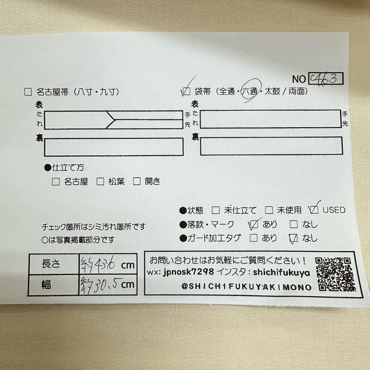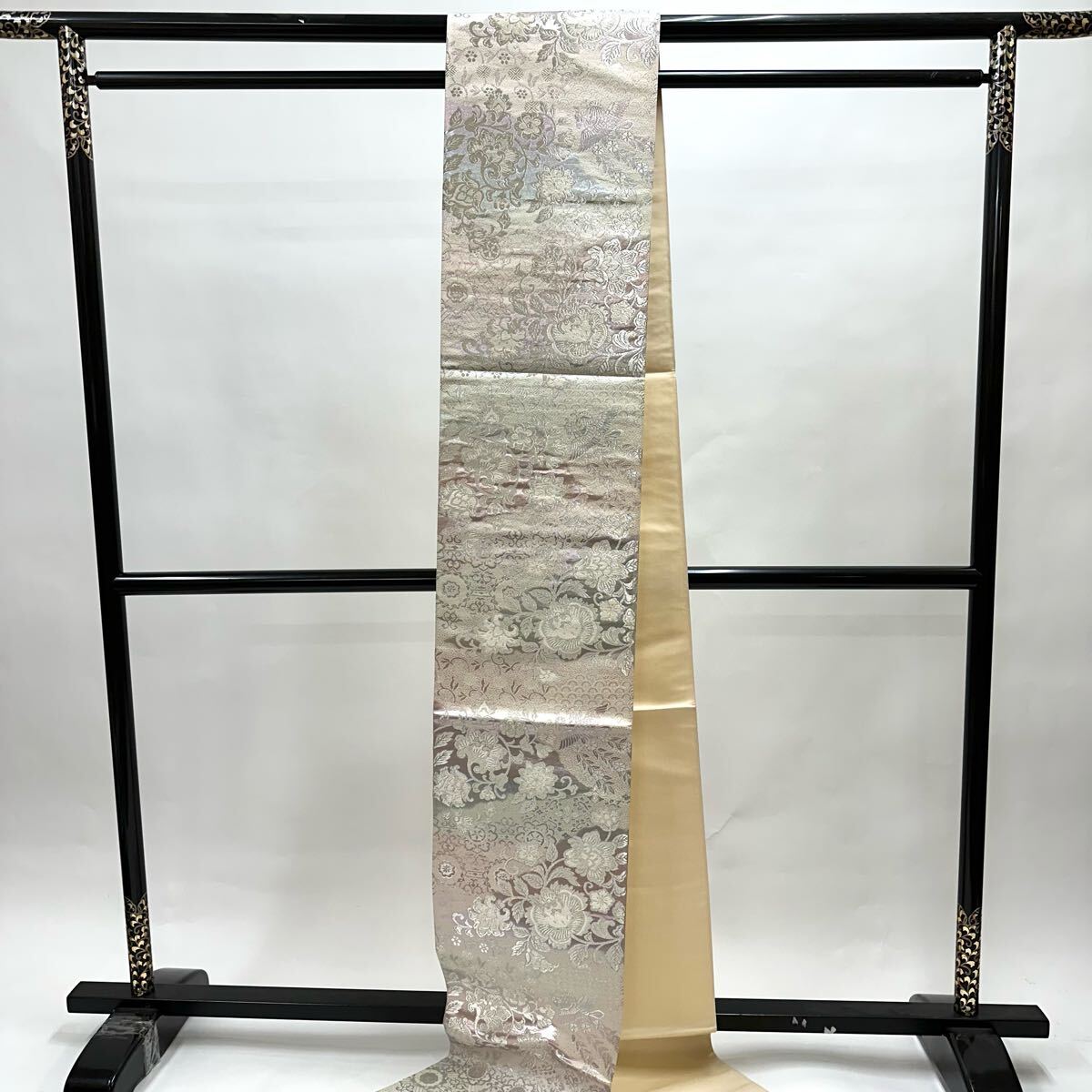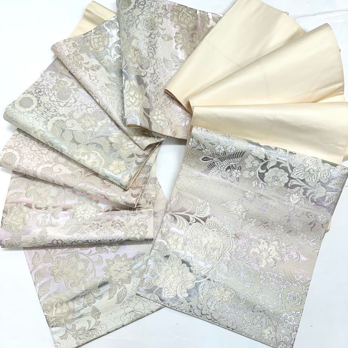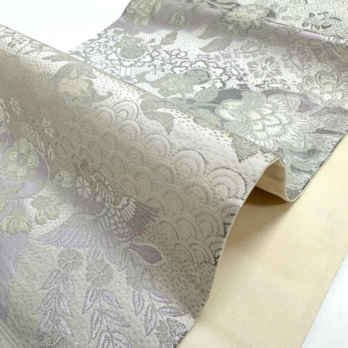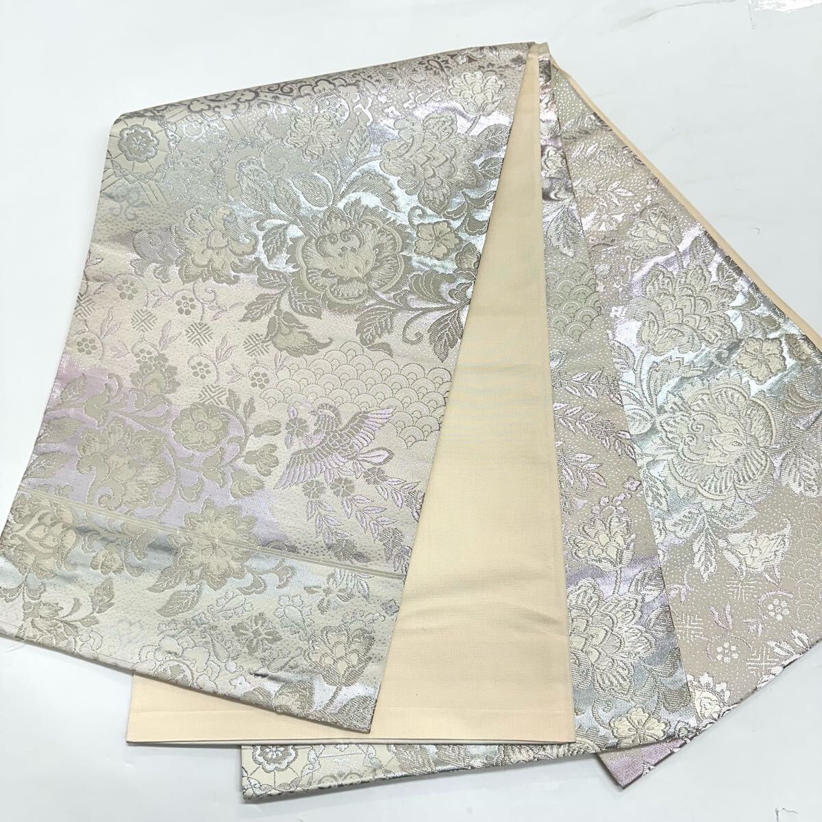 【七福】c463 逸品 高級品 正絹 袋帯 六通 正倉院古代裂 鳳凰 花 銀糸 ラメ刺繍 豪華