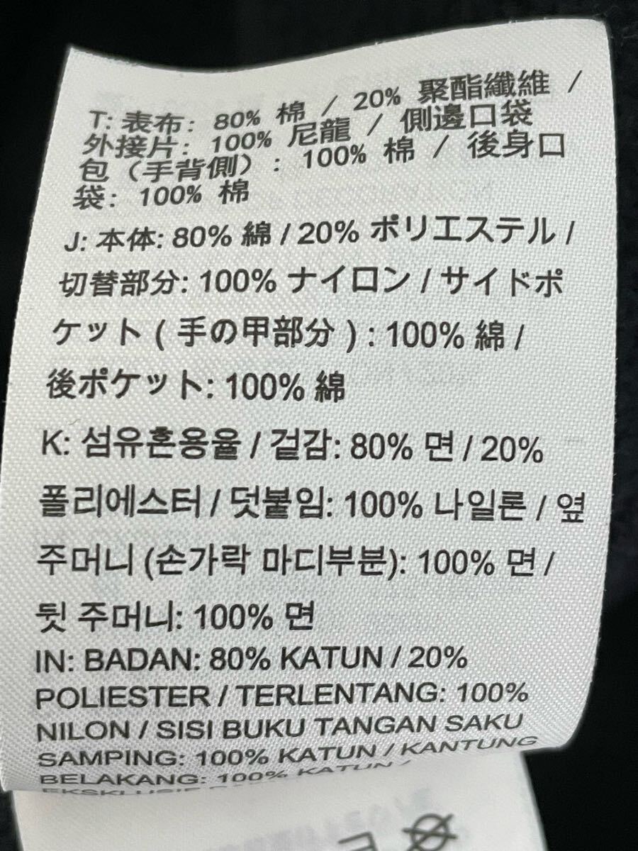 ●素材:綿80%、ポリエステル20%、切替ナイロン100%