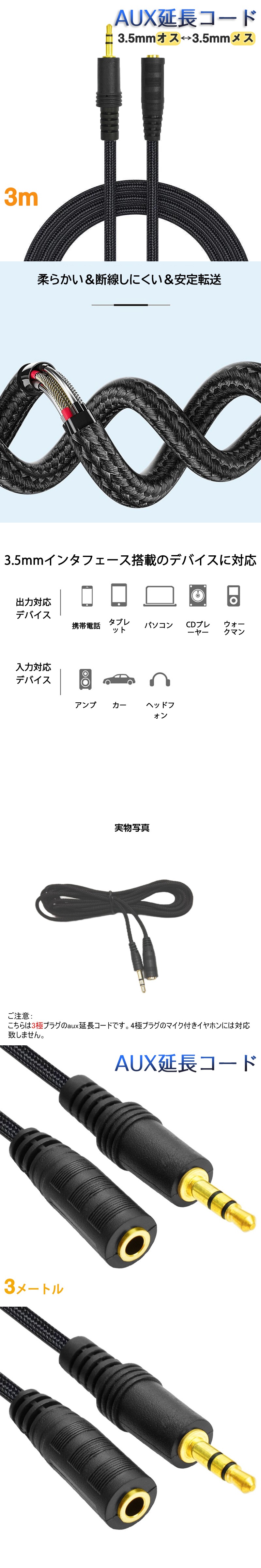 この高音質オーディオケーブルは、3mのaux延長ケーブルです。 |