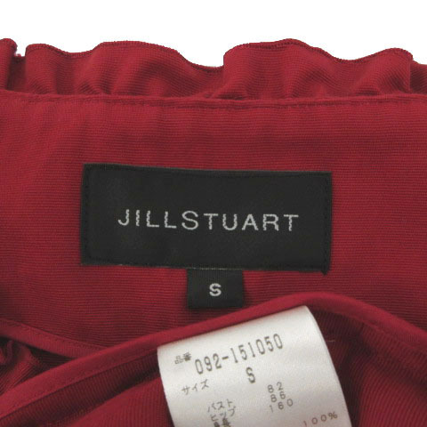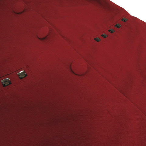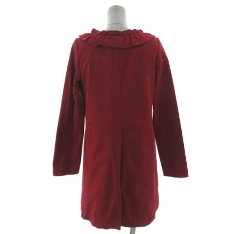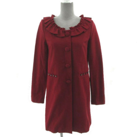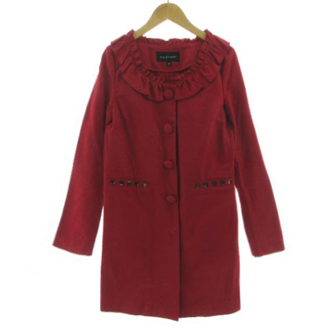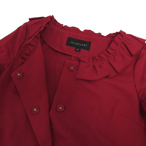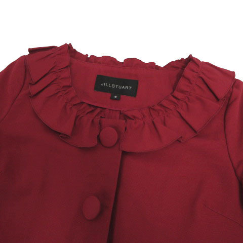 ジルスチュアート JILL STUART コート ノーカラー フリル ビジュー コットン レッド 赤 S レディース