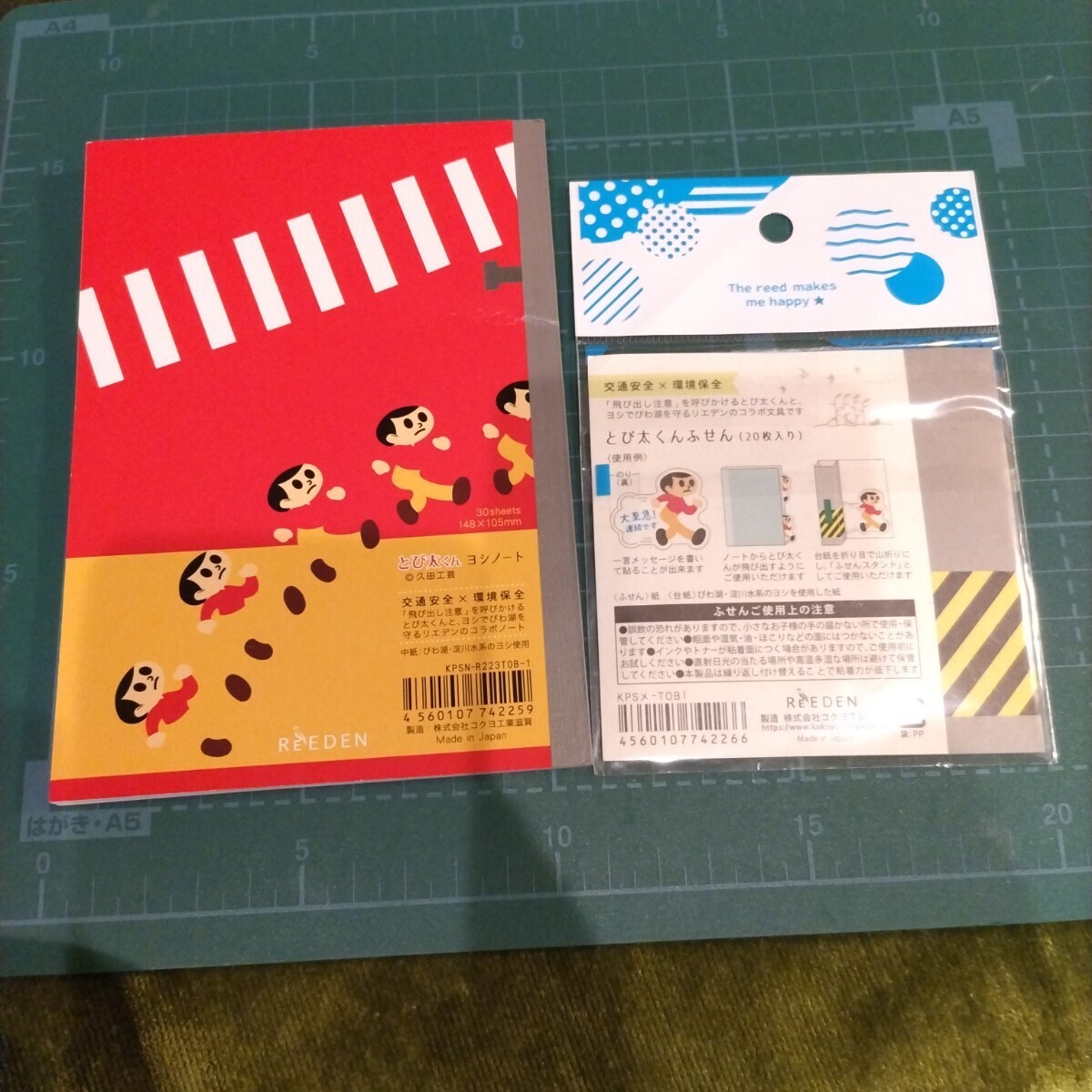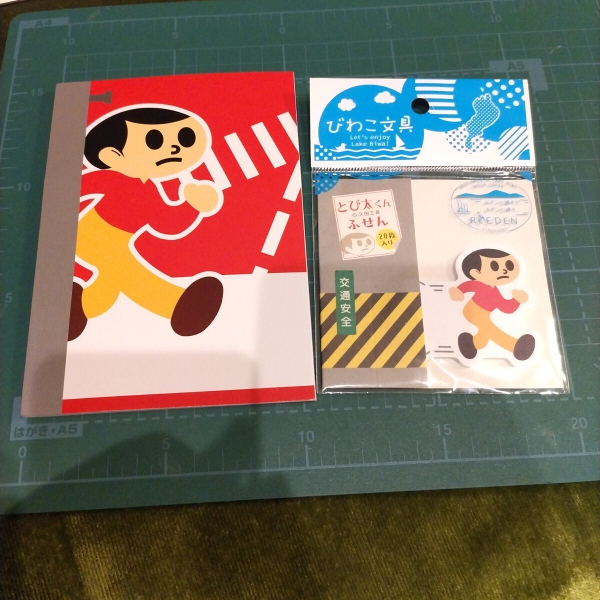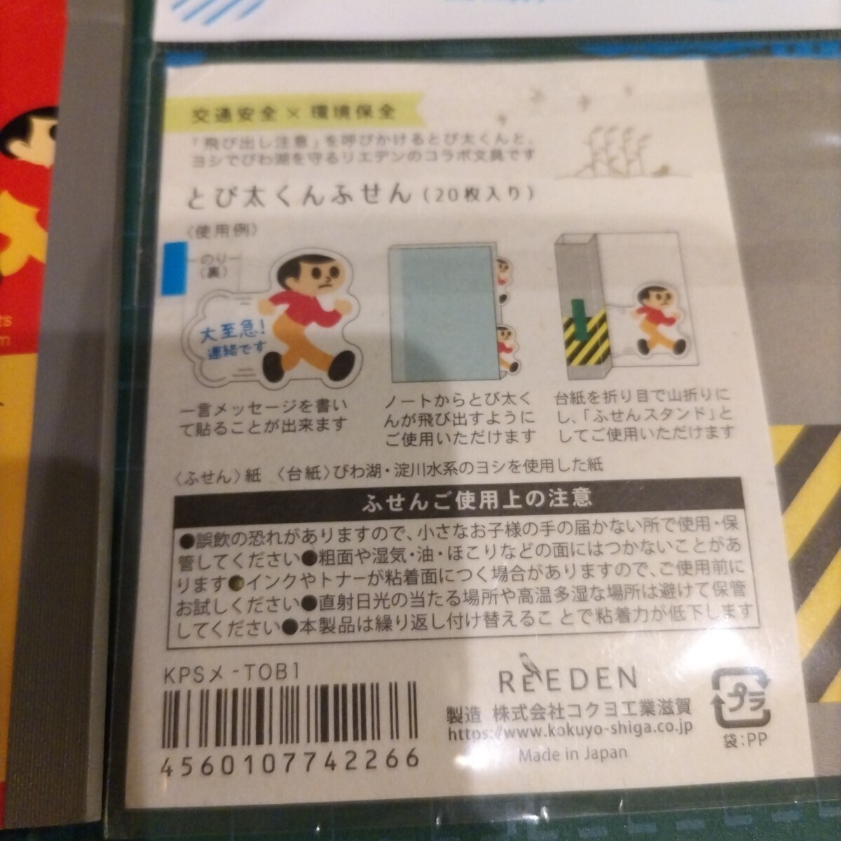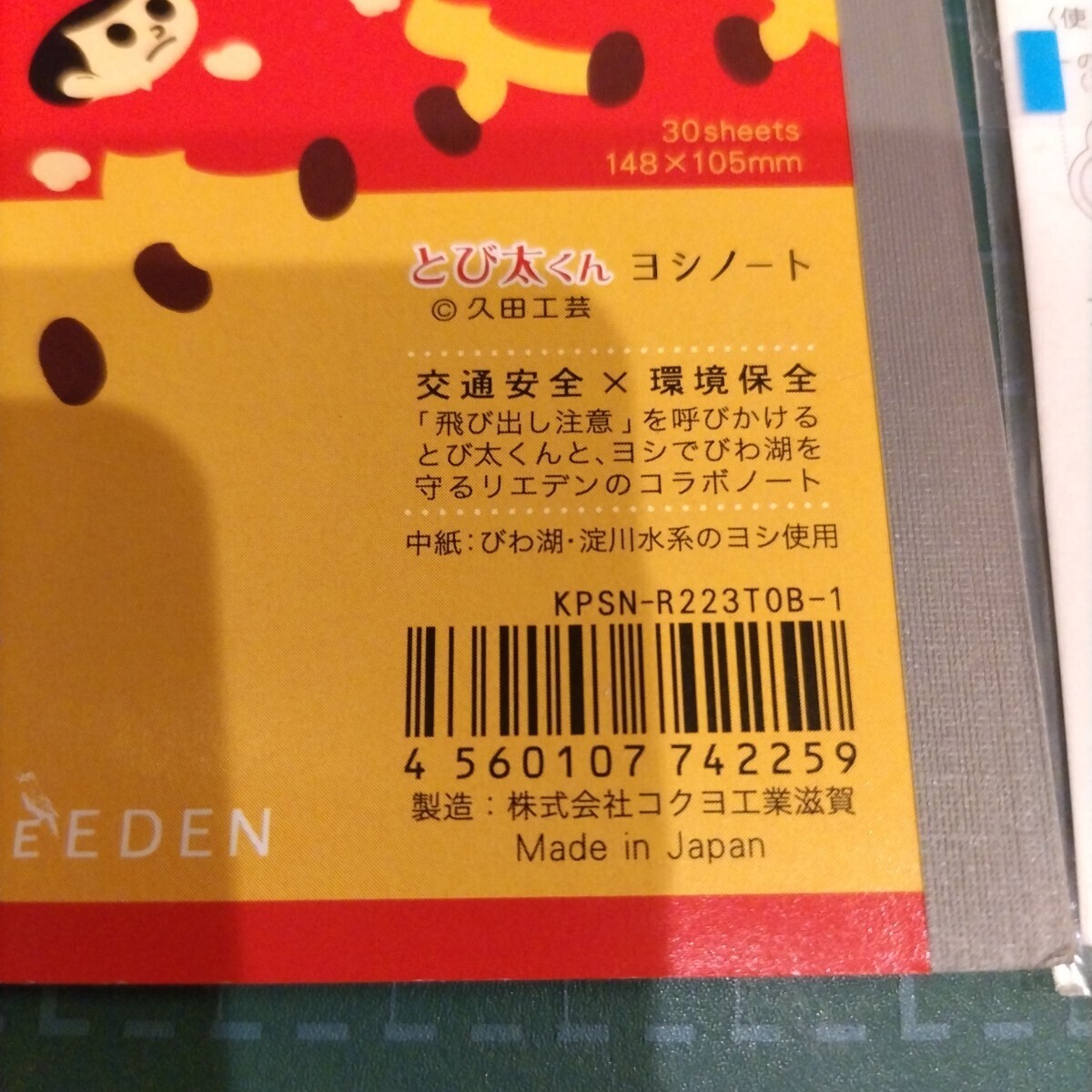 商品解説■「交通安全×環境保全」がコンセプトの「びわこ文具」と「とび太くん」のコラボレーションアイテムの「ノート」と「ふせん」の2点セットです。