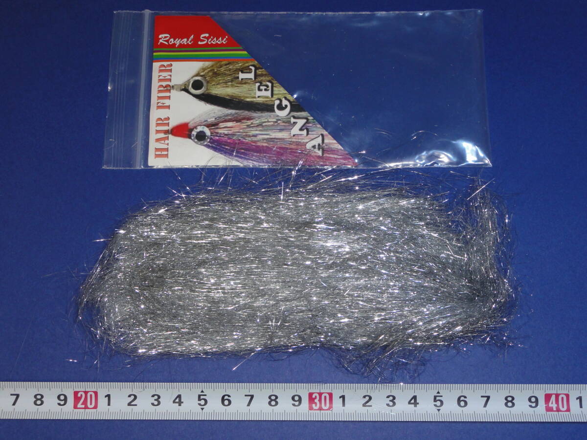 ご覧頂きありがとうございます。 ストリーマーのボディー材やウイング材として使用します。 ファイバーの長さが12センチ前後あるので、大型ストリーマー向きのマテリアルです。 極細のマイラーティンセルを使用しており、水中での輝きや動きには定評があります。 カラー:シルバー パッケージサイズ:18×8センチ 内容量:約4グラム ※同日落札の商品のみ同梱発送可能です。 | ||