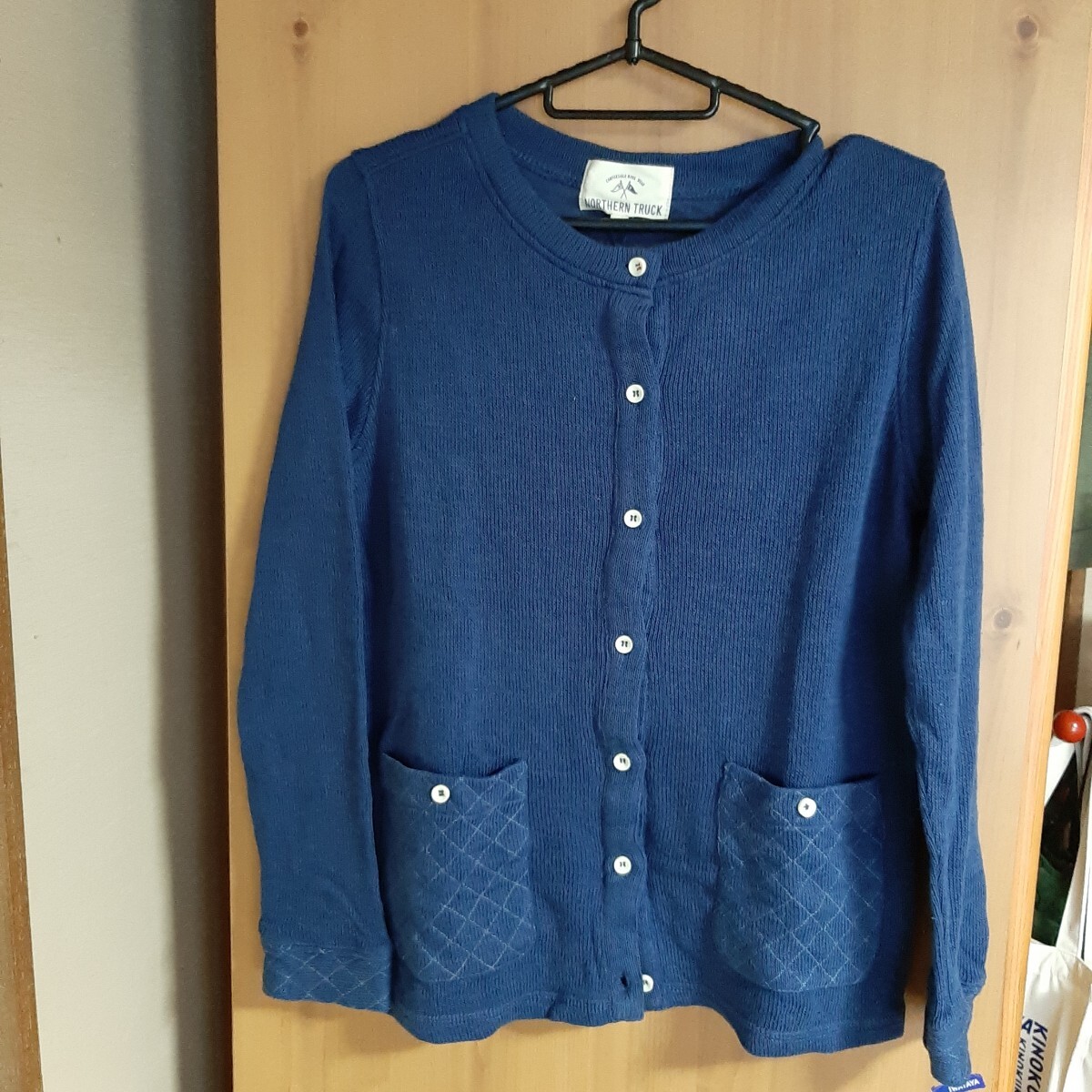 ノーザントラックのネイビーのキルティング風ポケット付きのカーディガン*