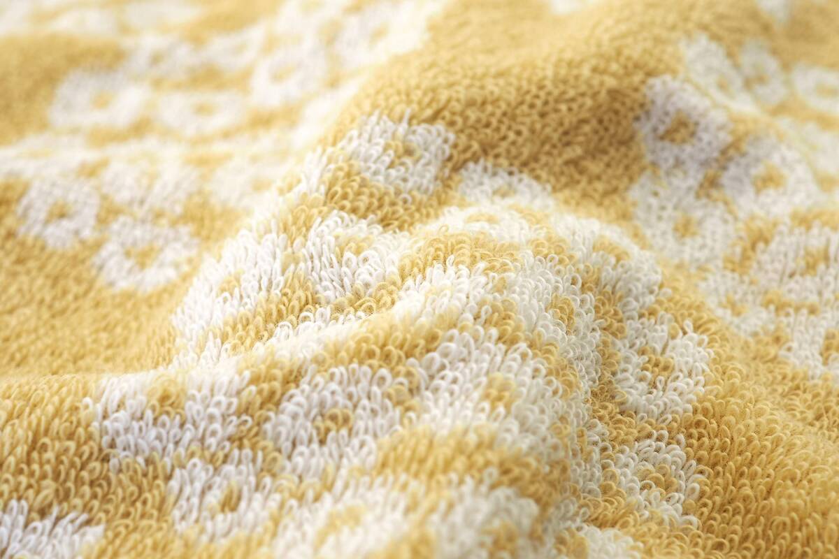 Kosugizen Onnela pieni(オンネラ ピエニ) フェイスタオル 甘撚りパイル イッピー イッピー イエロー 34×80㎝ 北欧調のジャガードモチーフ 中厚(標準)タイプ 2枚セット aONZG-309-2YE