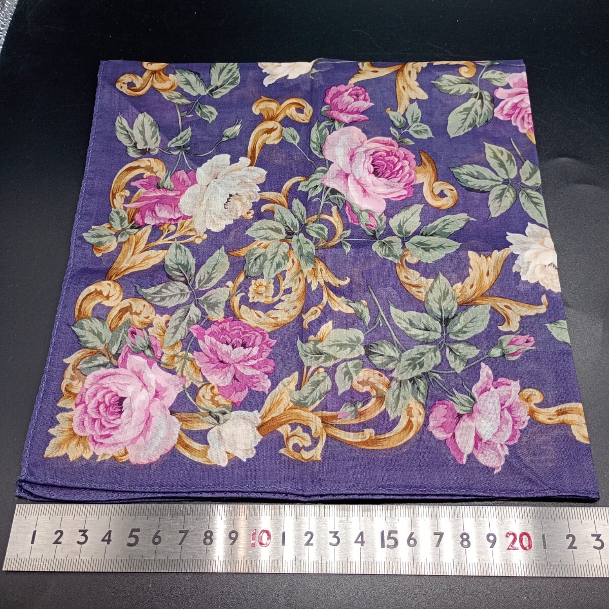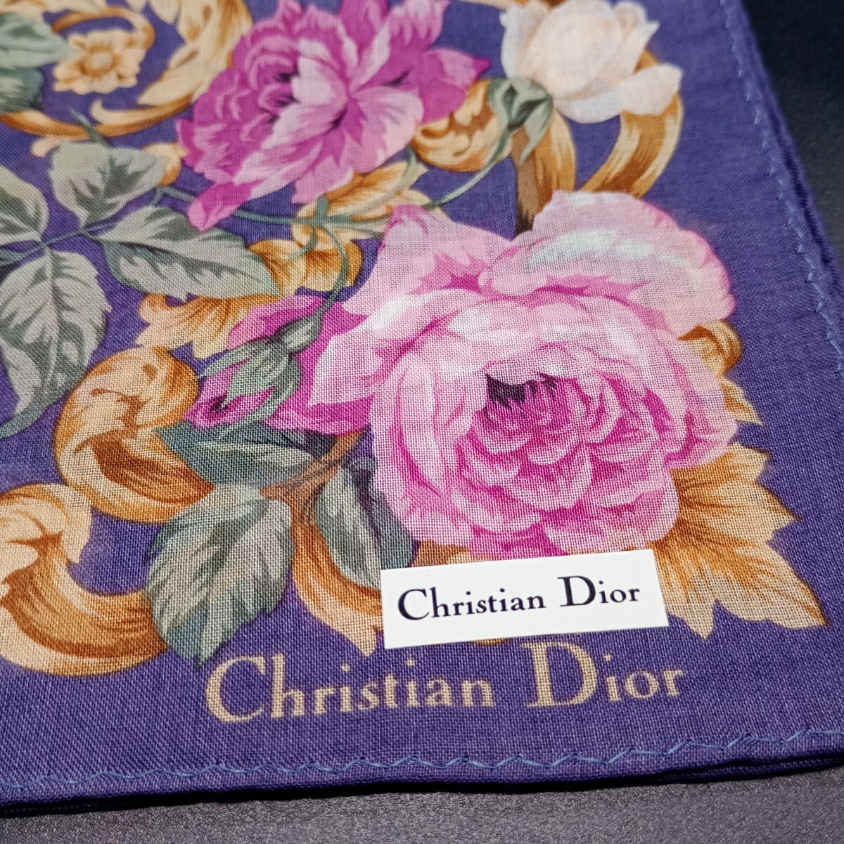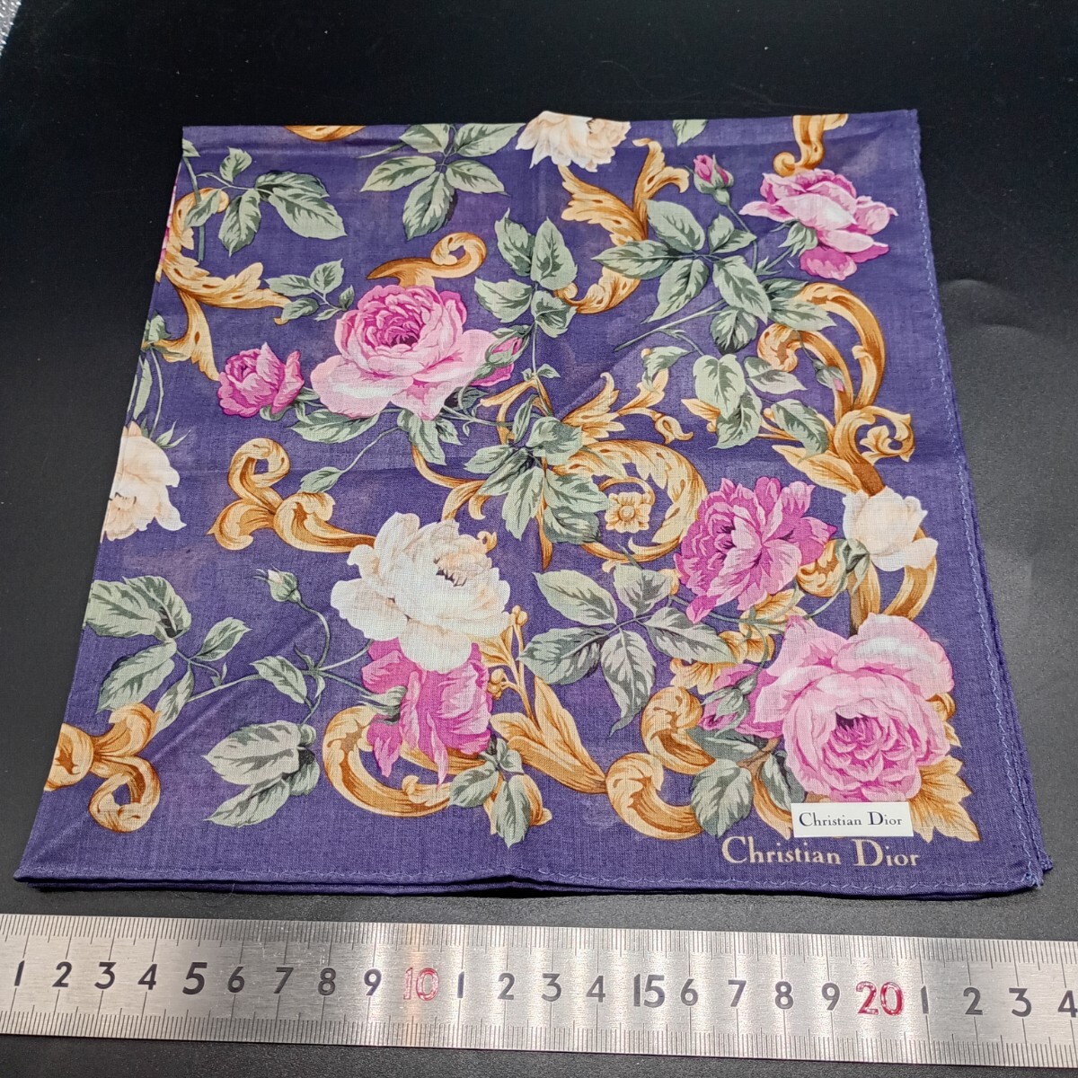 Christian Dior クリスチャンディオール ハンカチ ブルー 大花柄 バラ  no.3015