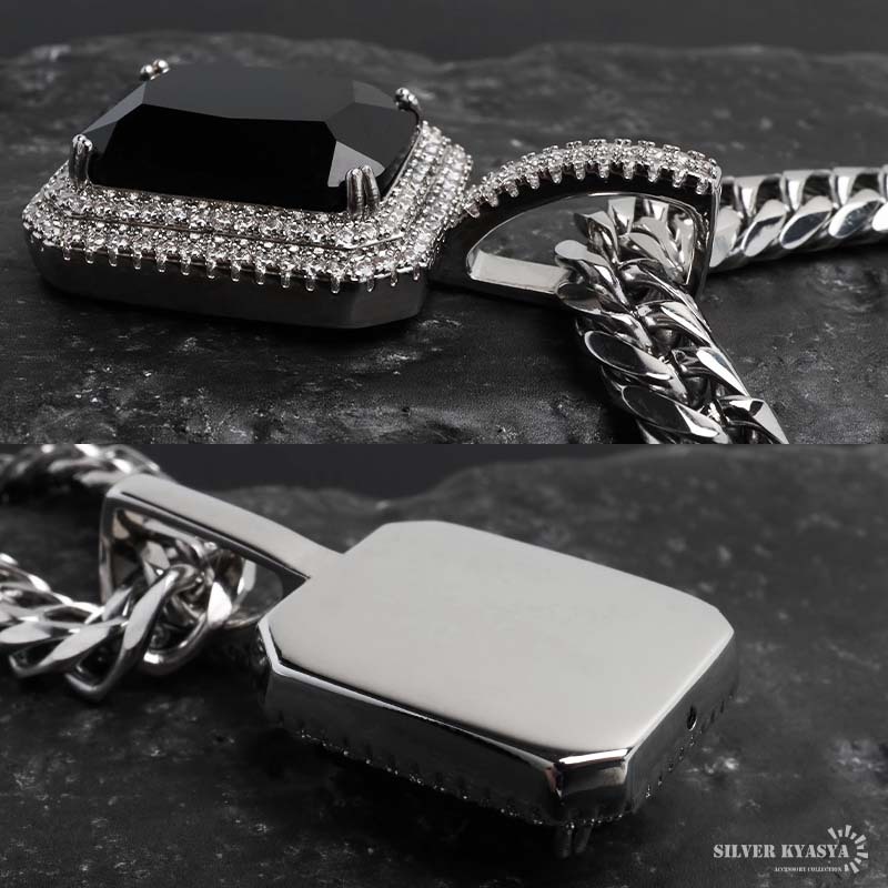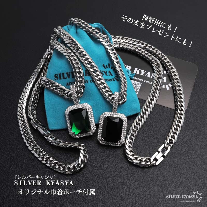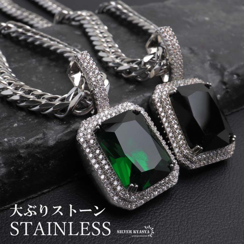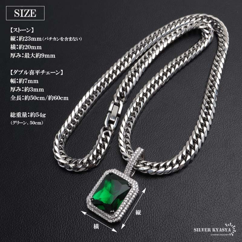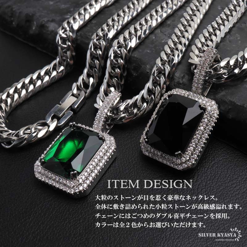 大粒のストーンが目を惹く豪華なネックレス。全体に敷き詰められた小粒ストーンが高級感溢れます。チェーンにはごつめのダブル喜平チェーンを採用。カラーは全2色からお選びいただけます。