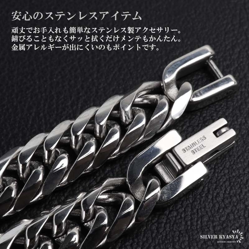 チェーンは頑丈でお手入れも簡単なステンレス製アクセサリー。錆びることもなくサッと拭くだけメンテもかんたん。金属アレルギーが出にくいのもポイントです