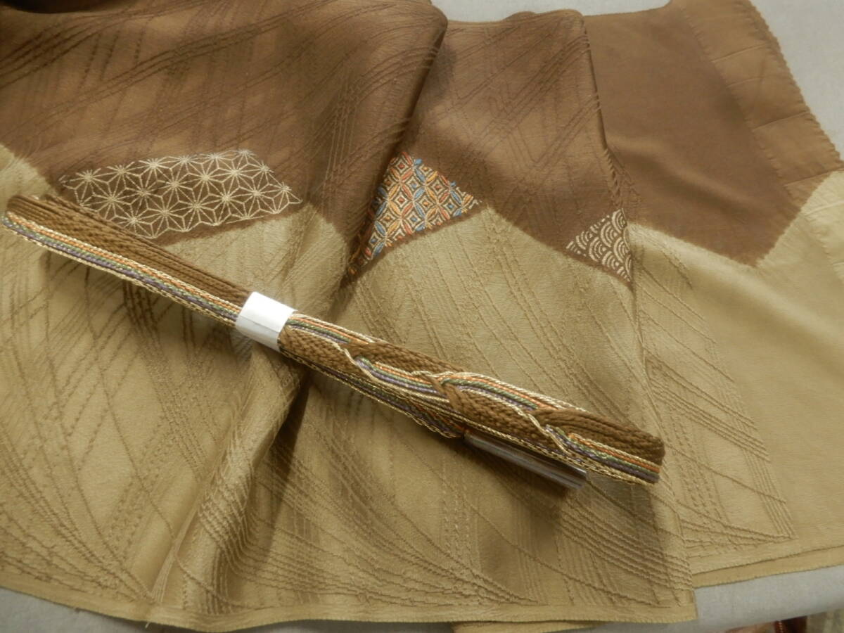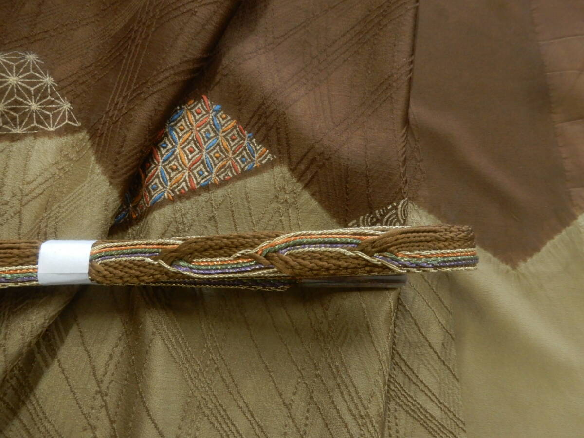 <銀の斧>正絹・最高級の帯締め帯揚げセット・手組紐・M寸・帯揚げに刺繍・帯締めは特殊な組み方