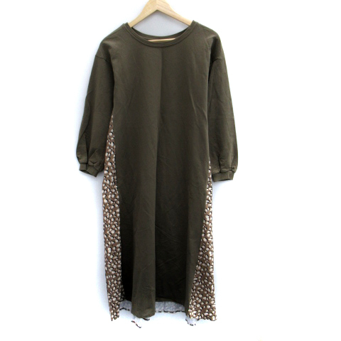 ロペ ROPE ワンピース ロング丈 長袖 ラウンドネック 総柄 切替 38 M マルチカラー カーキ /SM13 レディース