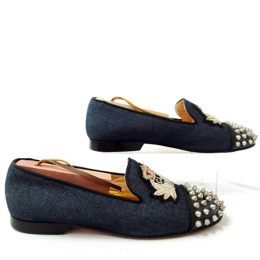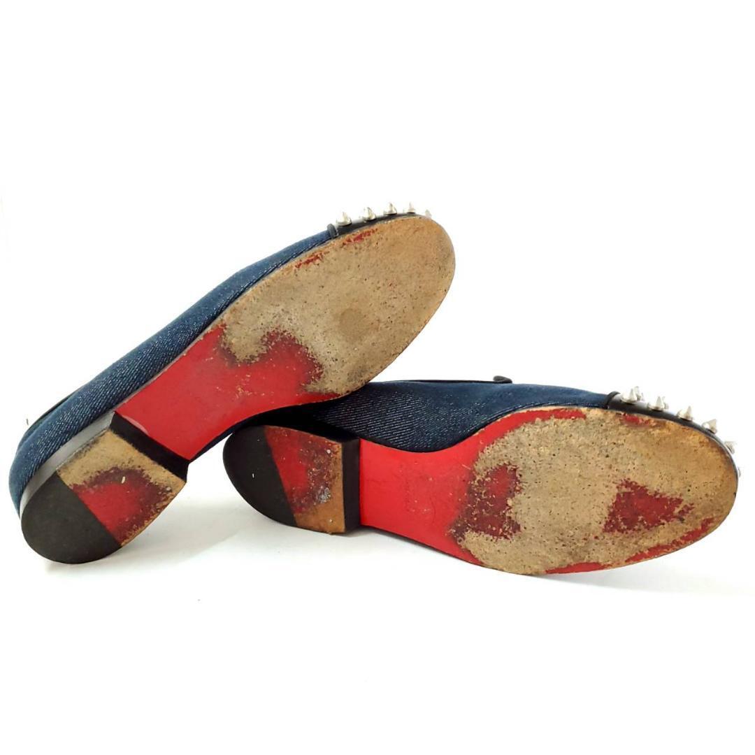 カジュアルなデニム生地×エナメルと、ルブタンらしいレッドソールが絶妙なバランスです。