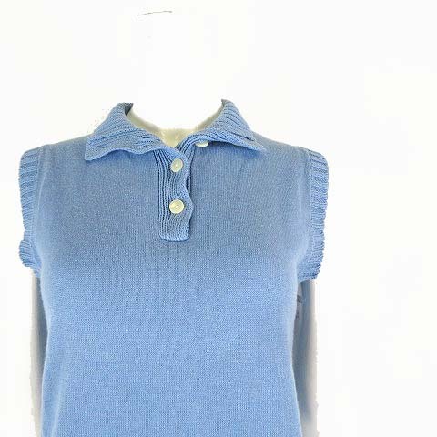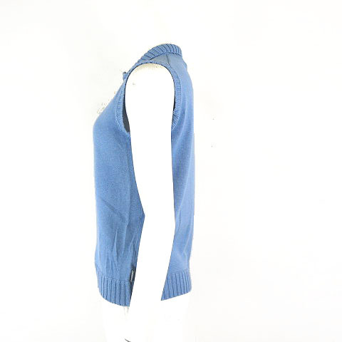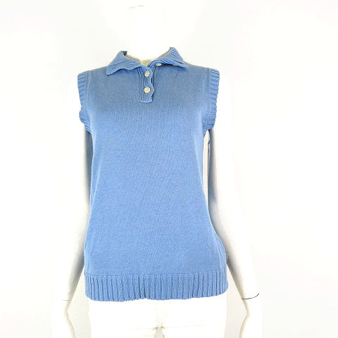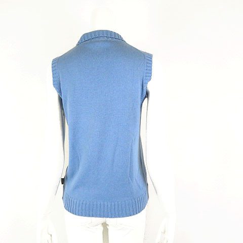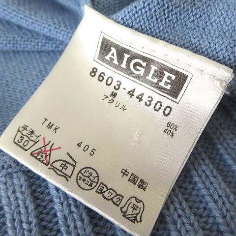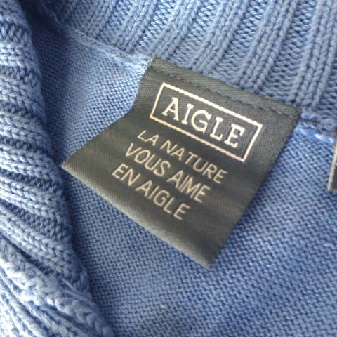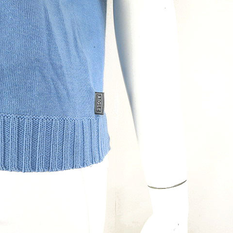 エーグル AIGLE ニット トップス ハーフボタン リブ 切替 コットン ロゴ ノースリーブ M ライトブルー 水色 レディース