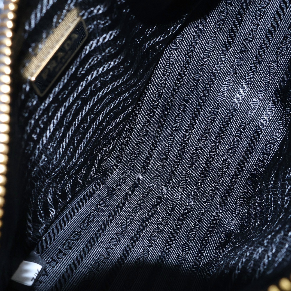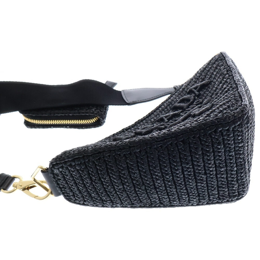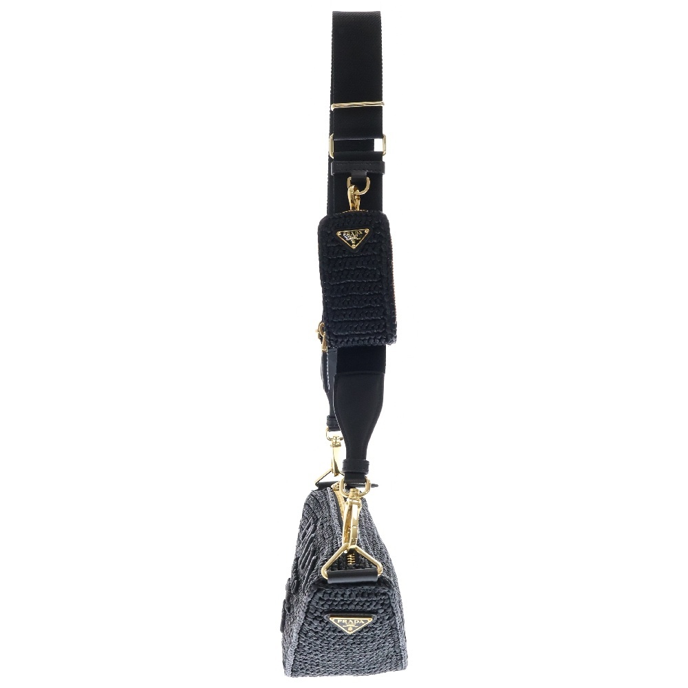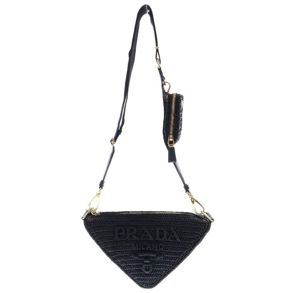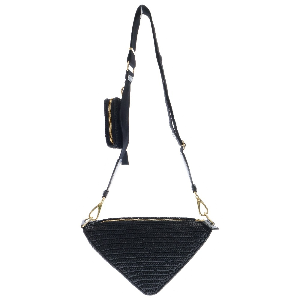 PRADA プラダ トライアングル クロシェ ブラック ラフィア ショルダーバッグ ゴールド金具 1BH190