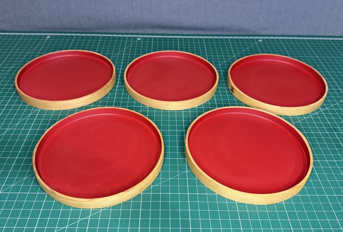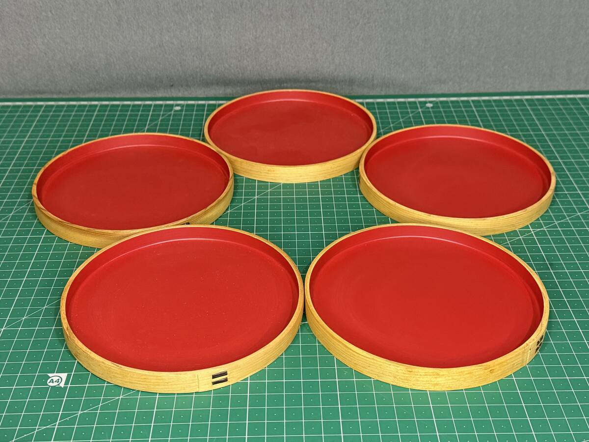 秋田大舘曲げわっぱ 銘々皿 朱塗り 昭和レトロ 5客組