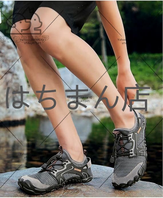 マリンシューズ ウォーターシューズ 水陸両用 幅広 アクアシューズ アウトドア グレー 通気性 速乾 滑り止め 24.5cm-28cmサイズは選べます