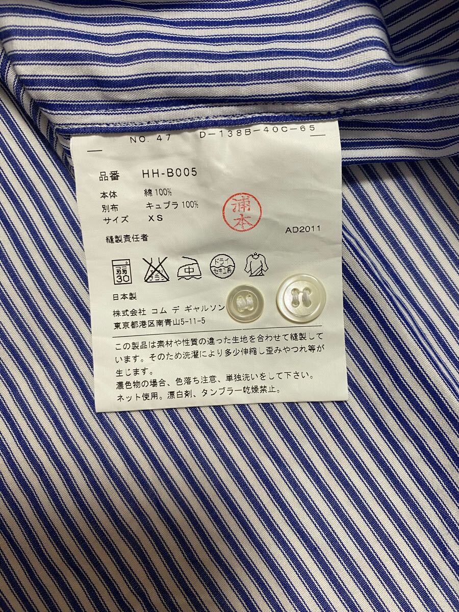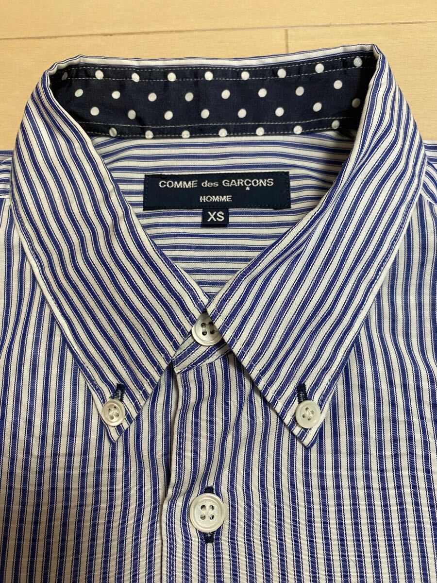 コムデギャルソンオムの裏ドット、ストライプ長袖シャツ、XSサイズ、正規店購入品。