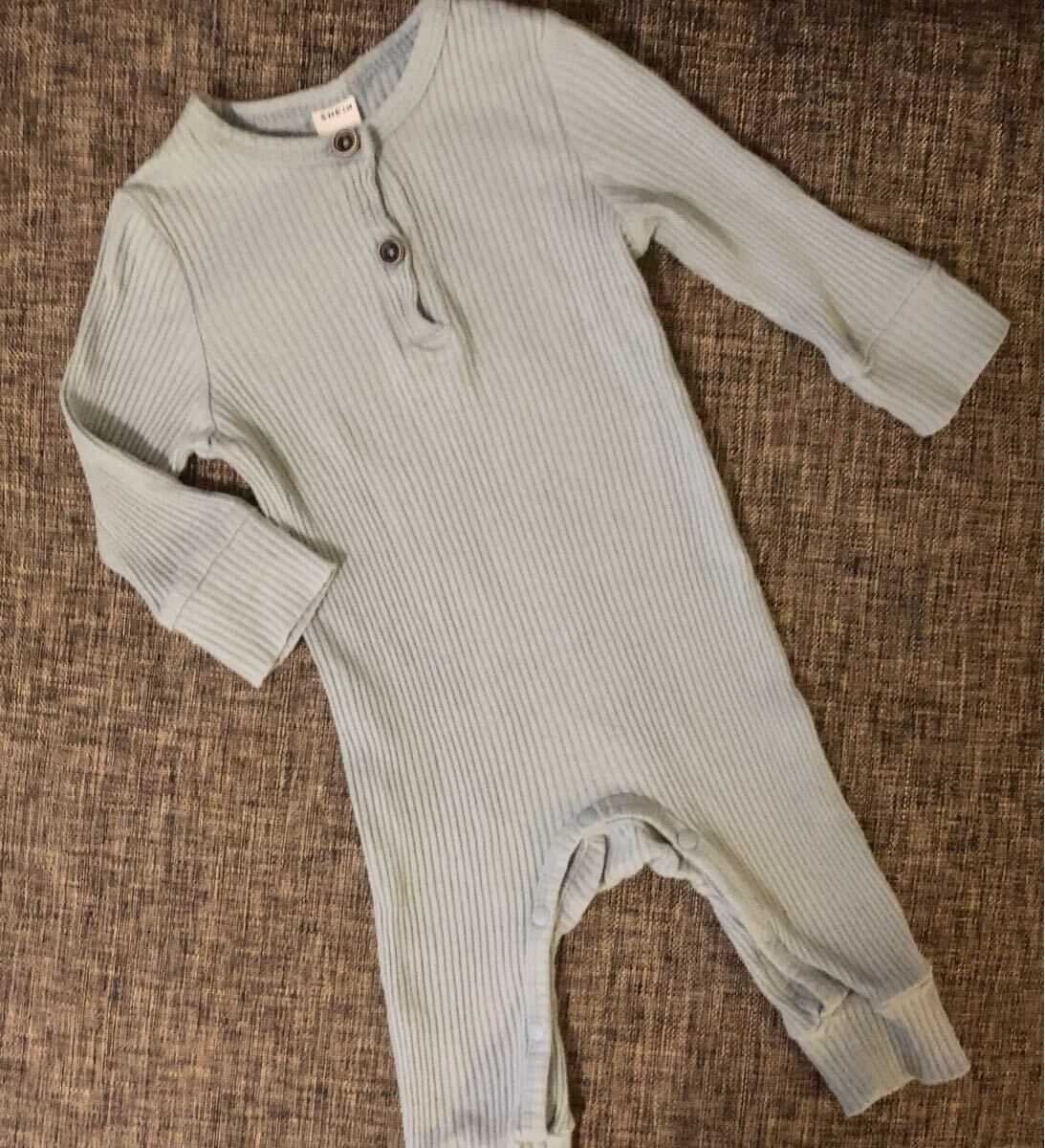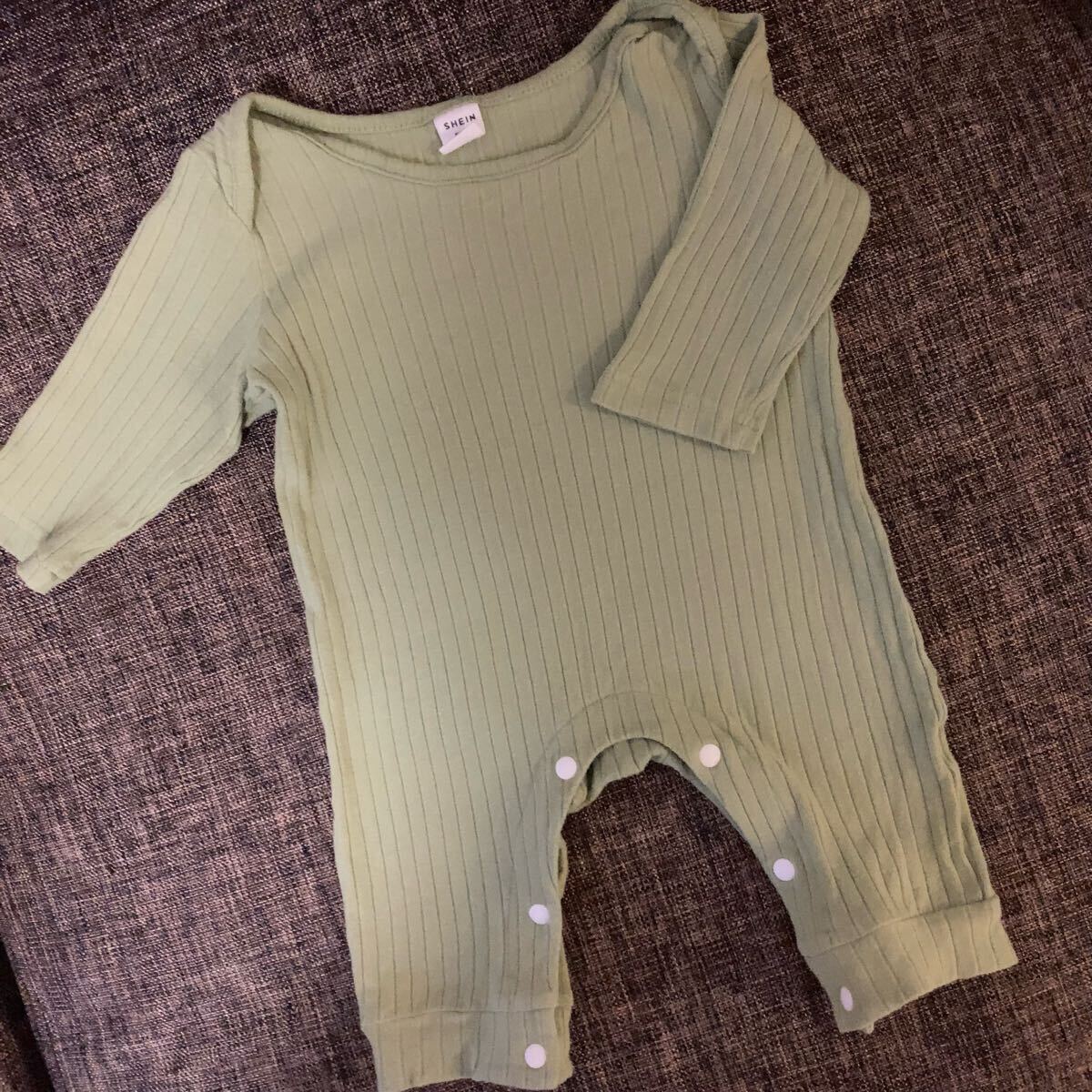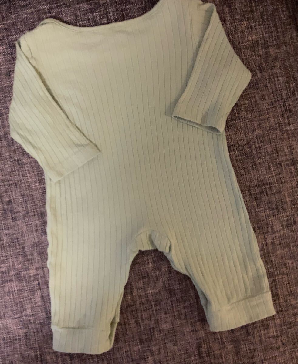 ・緑のベビー服はサイズ3-6M(目安60-70cm)