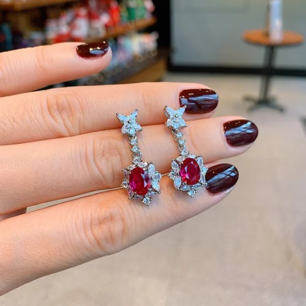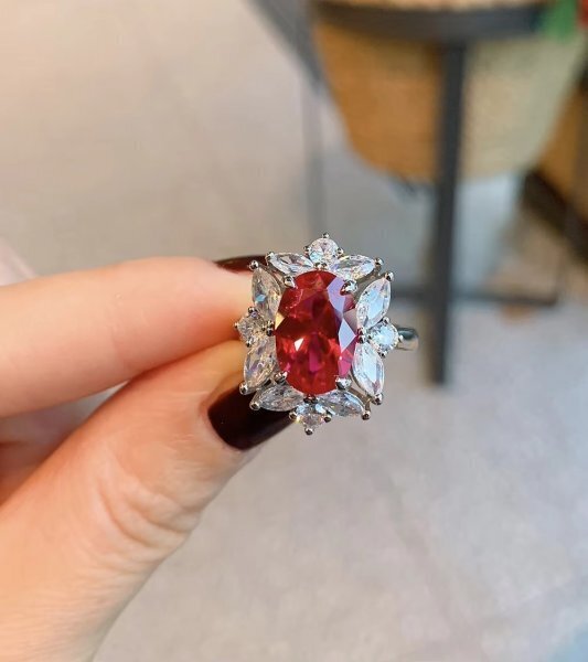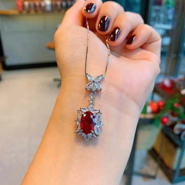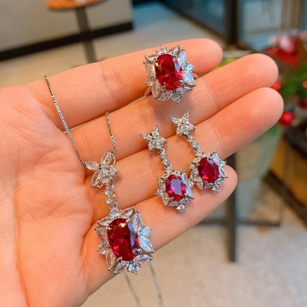 女性用ジェムストーンジュエリーセット(ペンダント、リング、ピアス)、ルビー