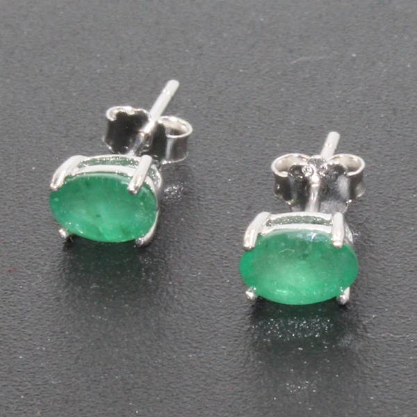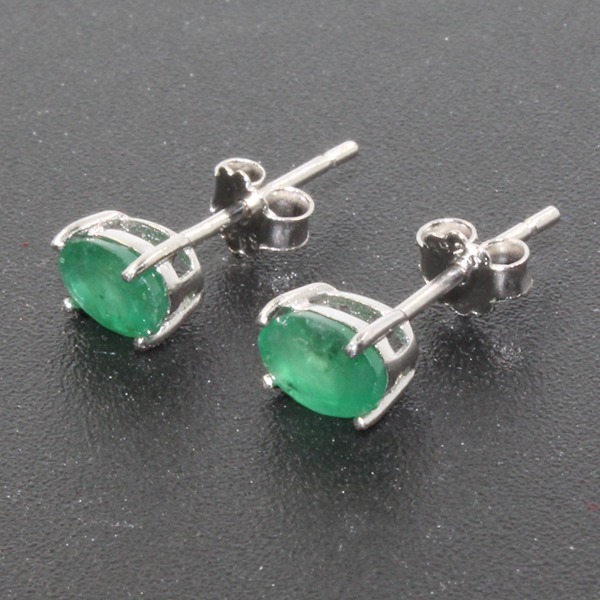 シンプルなデザインの女性用ナチュラルエメラルドスタッドピアス,4mm x 6mm,ナチュラルiグレード,クラシック925,シルバー