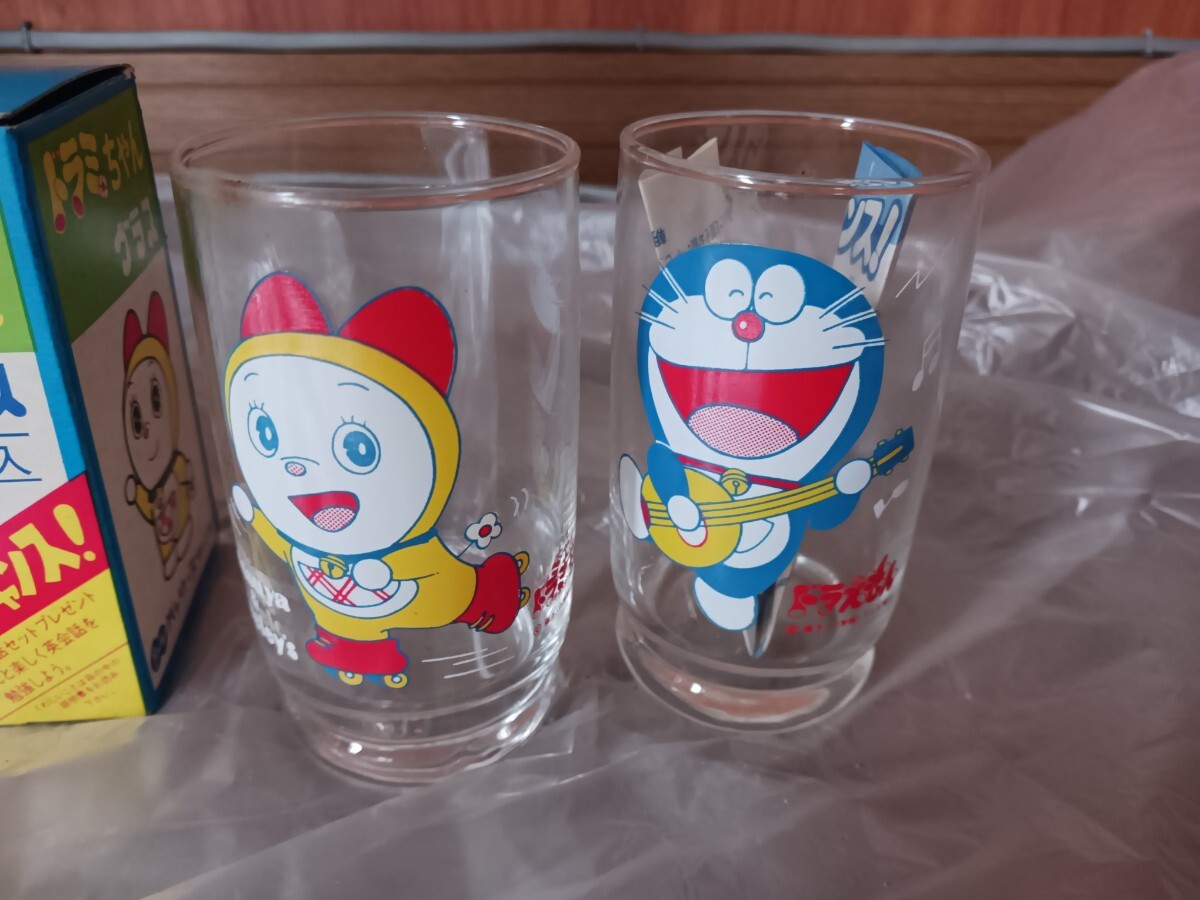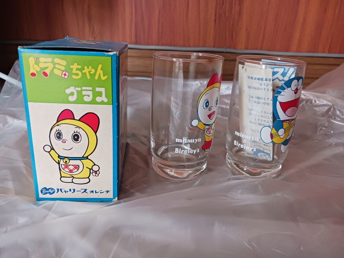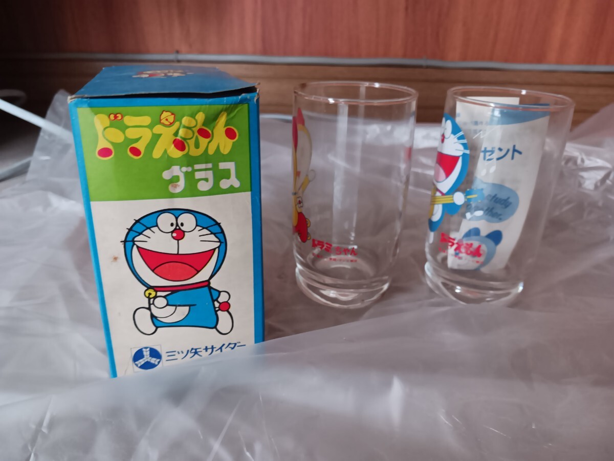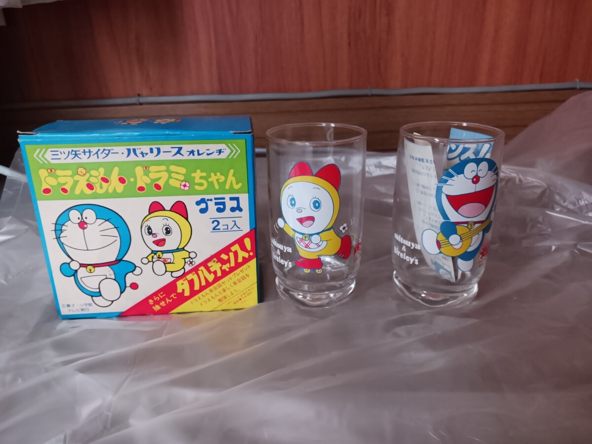 未使用 昭和 当時物 ビンテージ ドラえもん ドラミちゃん 三ツ矢サイダー バヤリース グラス 箱付 コップ ガラス 2コ入 昭和レトロです。